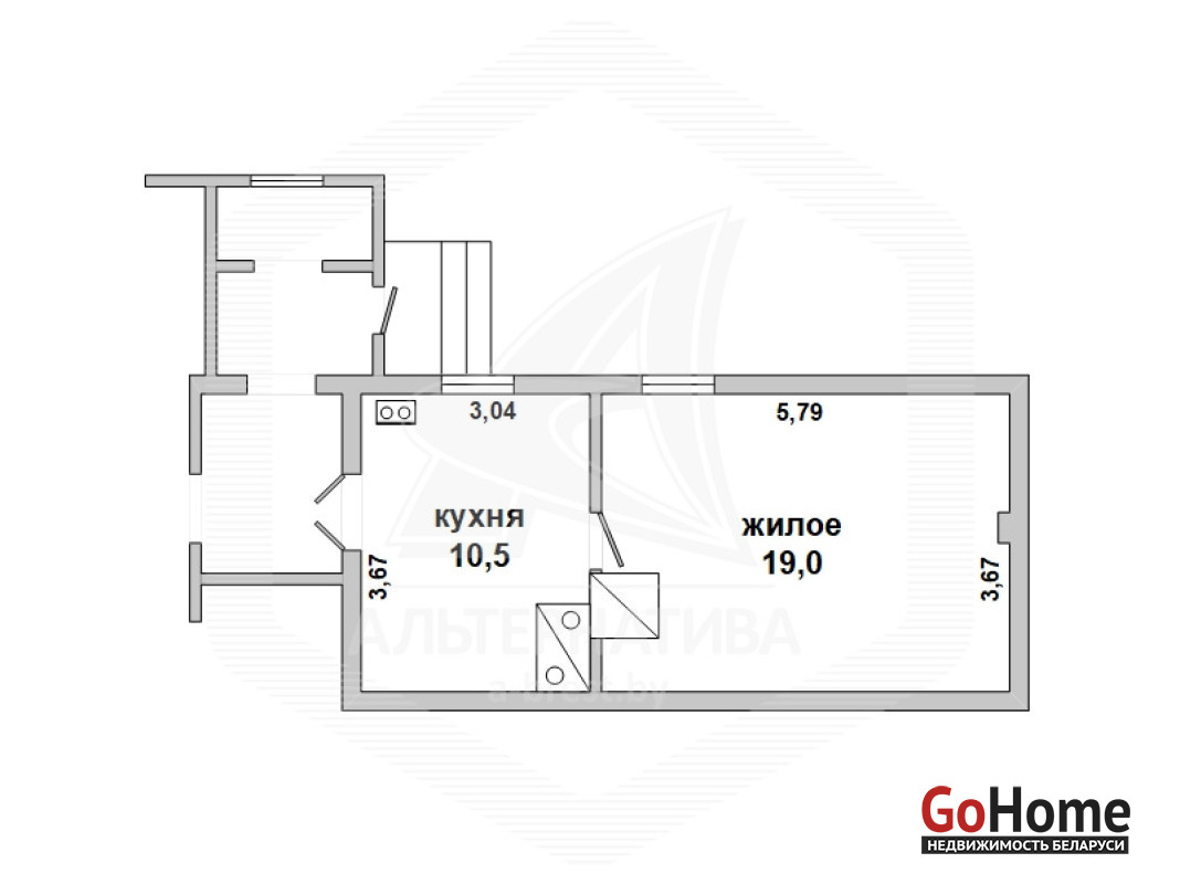 Квартира в блокированном жилом доме в г.Бресте. 1940 г.п., реконструкция 1987 г. 1 этаж. Общ.СНБ - 34,9 кв.м, общ.- 29,5 кв.м, жил.- 19,0 кв.м, кух.- 10,5 кв.м. 1 комната, потолки - 3,0 м.