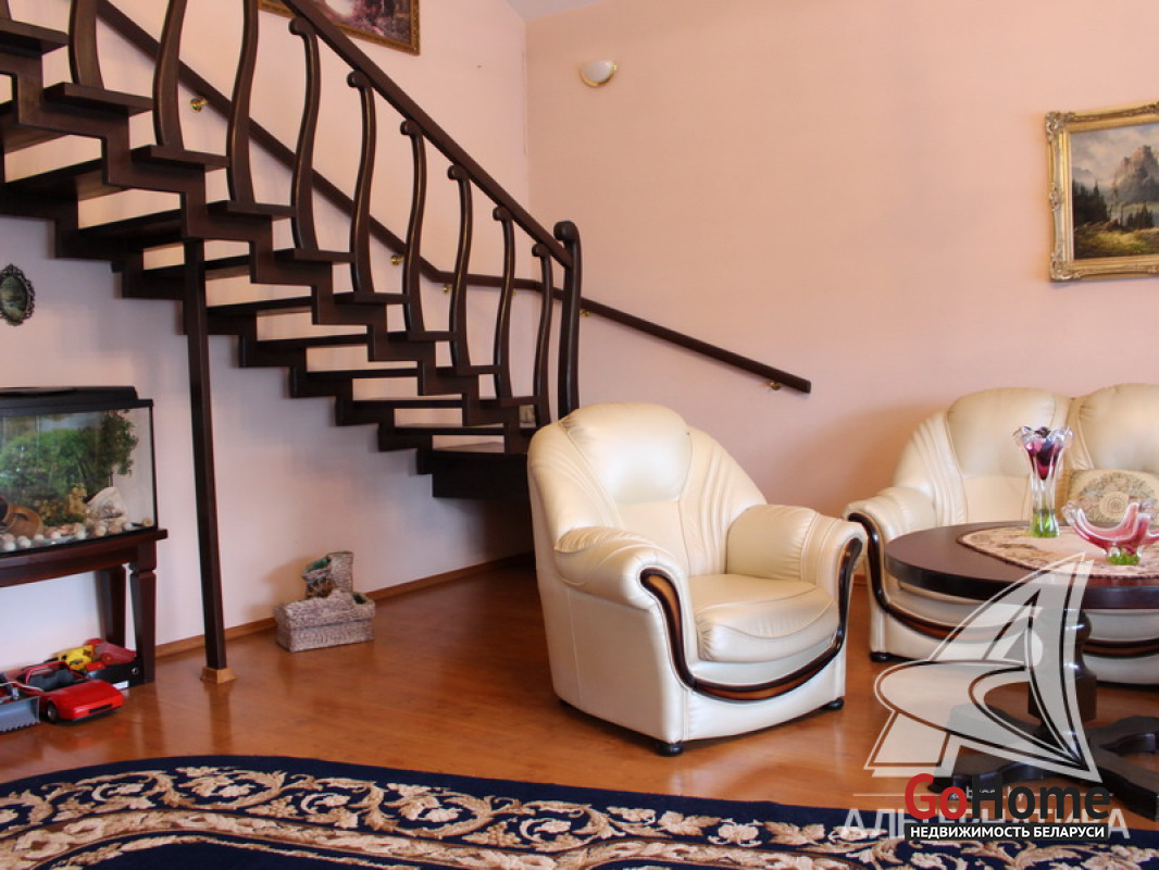 Жилой дом в Брестском р-не. 2002 г.п. 1 этаж, мансарда, подвальный этаж. Общ.СНБ - 296,8 кв.м, общ.- 140,8 кв.м, жил.- 81,5 кв.м, кух.- 24,6 кв.м. 4 комнаты, высота потолка - 2,9 м.