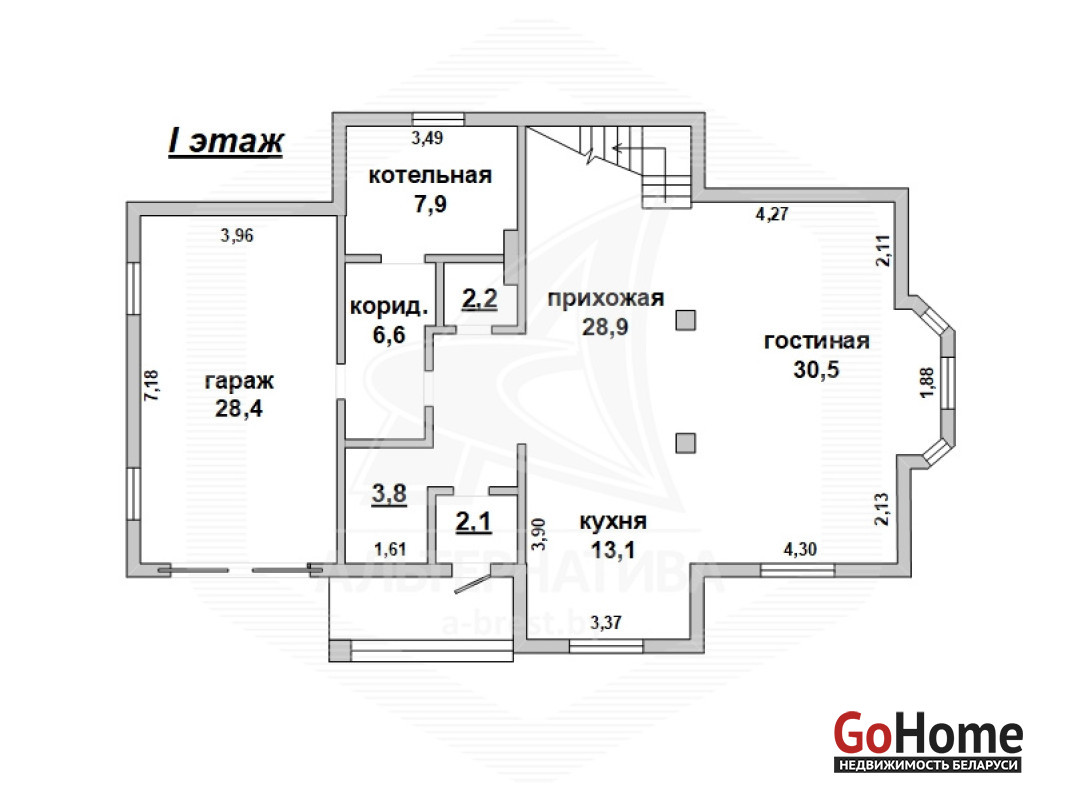 Жилой дом в г.Бресте. 2007 г.п. 1 этаж, мансарда. Общ.СНБ - 236,5 кв.м, общ.- 208,1 кв.м, жил.- 112,9 кв.м, кух.- 13,1 кв.м. 5 комнат, потолки - 2,70 м.