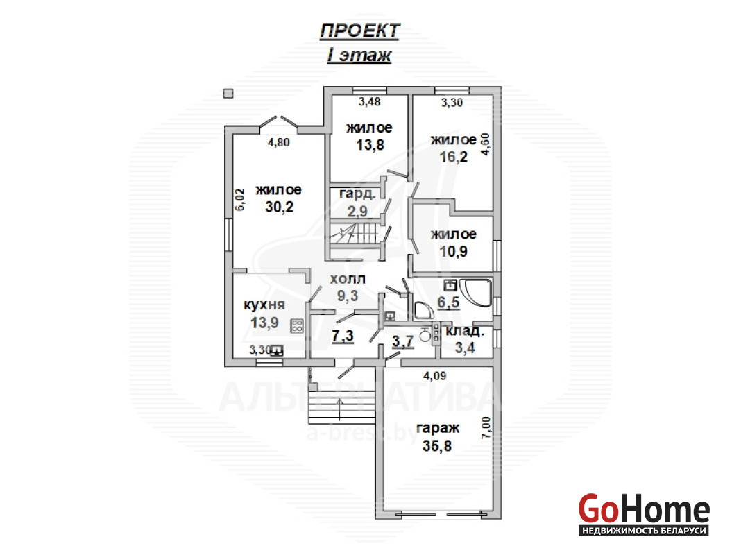 Коробка жилого дома в Брестском р-не. 2018 г.п. 1 этаж, мансарда. Общ.СНБ- 224,37 кв.м, общ.- 224,37 кв.м, жил.- 71,13 кв.м, кух.- 13,86 кв.м. 4 комнаты, высота потолка - 2,7 м.