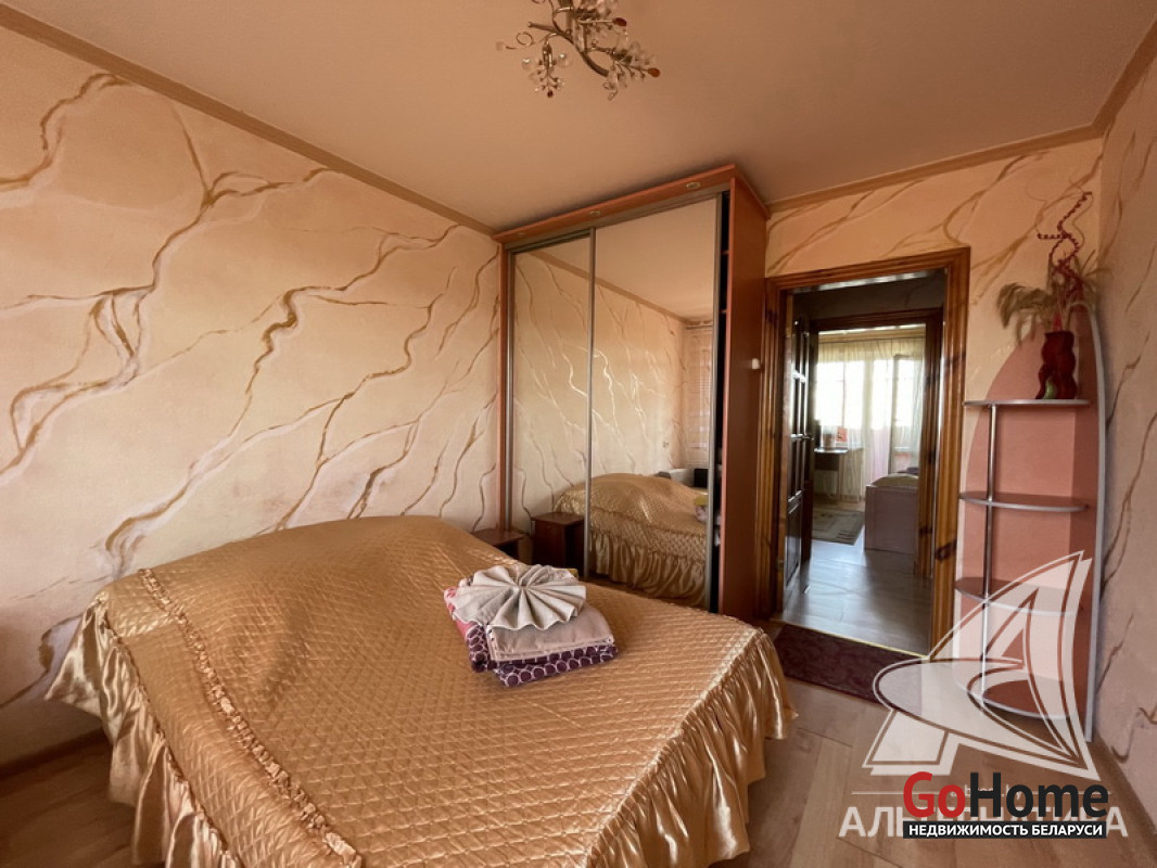 3-комнатная квартира, г. Брест, ул. Гродненская, 1987 г.п., 6 / 9 панель, 75,4 / 68,9 / 40,4 / 9,2, санузел раздельный, две лоджии застеклены, стеклопакеты, межкомнатные двери - массив (сосна), входная дверь двойная деревянная, потолки - снежка, полы - ламинат (положен на стяжку), стены оклеены обоями, акриловая ванна, телефон, домофон. Кухонный гарнитур, шкафы-купе (6 штук): три на лоджиях, один в спальне, два в коридорах. Квартира с хорошим ремонтом. Один пассажирский лифт. Лот - 203510