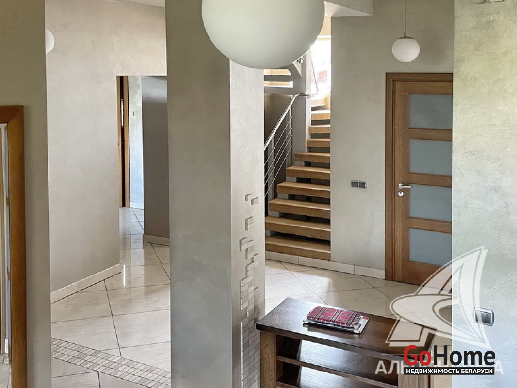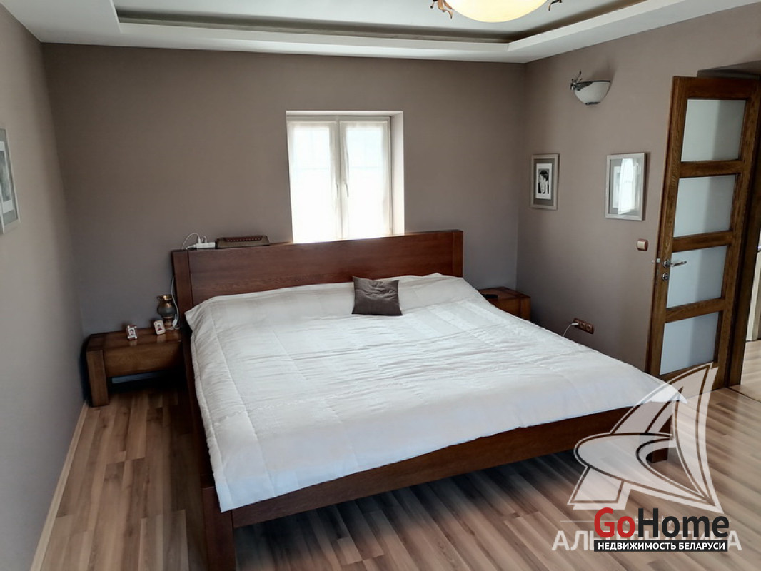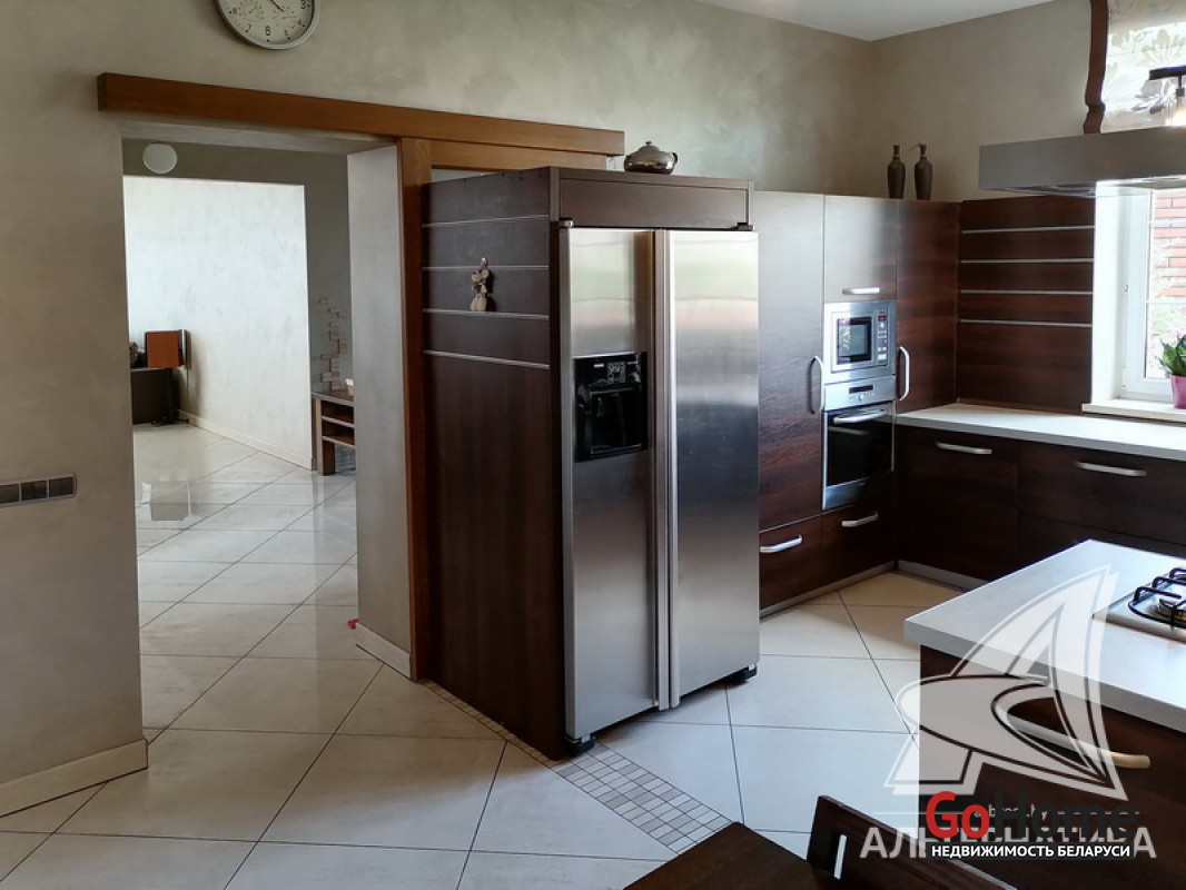 Жилой дом в г.Бресте. 2002 г.п. 2 этажа, подвальный этаж. Общ.СНБ - 287,8 кв.м, общ.- 172,5 кв.м, жил.- 99,4 кв.м, кух.- 21,0 кв.м. 5 комнат, потолки - 3,0 м.