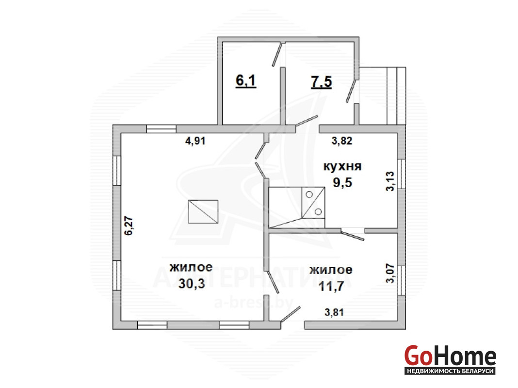 Жилой дом в Каменецком р-не. 1966 г.п. 1 этаж. Общ.СНБ - 65,1 кв.м, общ.- 51,5 кв.м, жил.- 42,0 кв.м, кух.- 9,5 кв.м. 2 комнаты, высота потолка - 2,53 м.