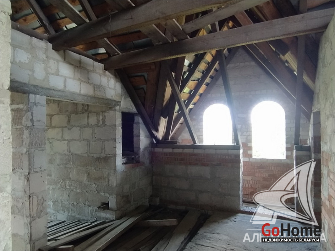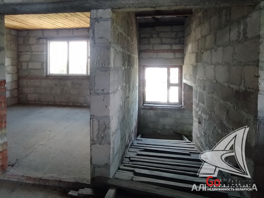 Коробка жилого дома в Брестском р-не. 2009 г.п. 1 этаж, мансарда. Общ.СНБ - 244,7 кв.м, общ.- 180,7 кв.м, жил.- 98,1 кв.м, кух.- 18,4 кв.м. 5 комнат, высота потолка - 2,80 м.
