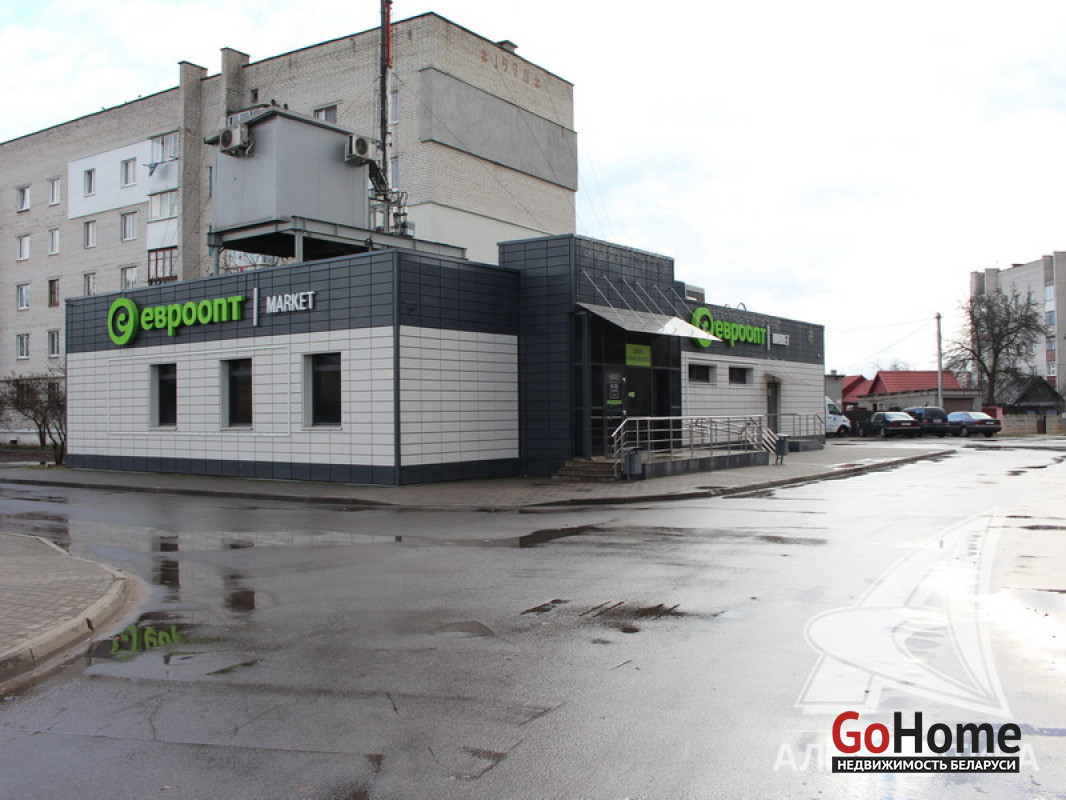 Здание специализированное розничной торговли (наименование - магазин) в собственность в районе ж/д станции "Брест - Восточный" города Бреста общей площадью 281 кв.м с действующим арендатором (заключен долгосрочный договор аренды). Отдельно стоящее одноэтажное капитальное строение 2014 года реконструкции (действующим арендатором проведена полная реконструкция здания с заменой всех коммуникаций). Торговая площадь - 156,2 кв.м, подсобные и административные помещения, тамбур, электрощитовая, погрузочно-разгрузочная рампа. Высота потолков - 2,81 м. Технические характеристики здания: фундамент бетонный, полы - плитка, стены кирпичные, перекрытия - ж/б плиты, крыша совмещенная рулонная. Установлены индивидуальные приборы учета тепла, электроэнергии и водоснабжения, оборудована пожарно-охранная сигнализация, приточно-вытяжная вентиляция, видеонаблюдение. Земельный участок площадью 0,0511 га предоставлен собственнику в долгосрочную аренду для обслуживания здания (до 21.11.2049 г). Варианты обмена на другую недвижимость НЕ РАССМАТРИВАЮТСЯ. Лот - 204060
