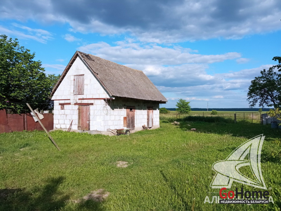 Хоз.постройки: блочный сарай и гостевой дом. До асфальта 400 м.