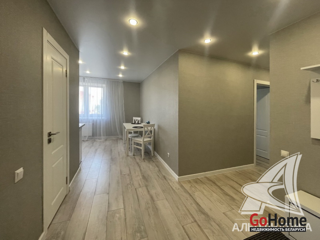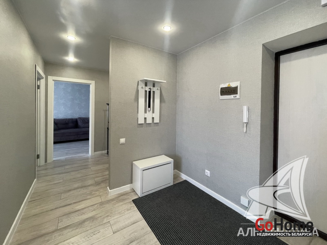 2-комнатная квартира, г. Брест, ул. Гоголя, 2020 г.п., 8 / 11 кирпич, 60,0 / 56,6 / - / -, санузел раздельный, лоджия застеклена, стеклопакеты, входная дверь металлическая, потолки - 2,50 м, полы - ламинат (положен на стяжку), стены оклеены обоями, в санузле современная плитка, акриловая ванна, домофон. Встроенный кухонный гарнитур, прихожая. Квартира с хорошим ремонтом. Лот - 210571