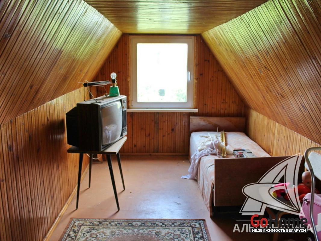 Садовый домик в Брестском р-не. 1985 г.п. 1 этаж, мансарда. Общ.СНБ - 40,6 кв.м, общ.- 40,6 кв.м, жил.- 27,6 кв.м, кух.- 9,8 кв.м. 2 комнаты.