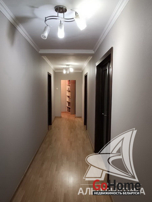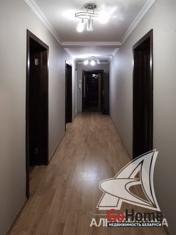 4-комнатная квартира, г. Брест, ул. Дубровская, 1991 г.п., 4 / 5 панель, 85,8 / 81,0 / 48,6 / 9,1, санузел раздельный, две лоджии застеклены, стеклопакеты, межкомнатные двери – шпон, входные двери двойные - металлическая и шпон, потолки - снежка (2,51 м), полы - ламинат и плитка (положены на стяжку), стены оклеены обоями, в санузле современная плитка, заменена сантехника, заменен полотенцесушитель, заменены сантехнические трубы, телефон, домофон. Кухонный гарнитур, шкаф-купе. Квартира с хорошим ремонтом. Квартира расположена на две стороны. Все окна выходят во двор. Лот - 210922