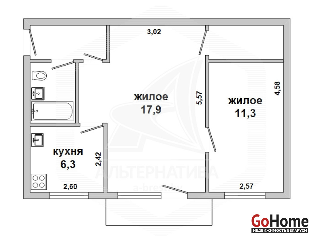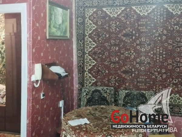 2-комнатная квартира, г. Кобрин, ул. Пушкина, 2 / 3 кирпич 1963 г.п., 45,0 / 44,4 / 29,2 / 6,3, санузел совмещенный, балкон, стеклопакеты, деревянные межкомнатные двери, входная дверь металлическая, потолки - снежка (2,47 м), полы - доска окрашенная, стены оклеены обоями, газовая колонка в кухне, телефон, домофон. Кухонный гарнитур, сервант, мягкий уголок, две кровати, шкаф в прихожей. Квартира без ремонта. Лот - 211443