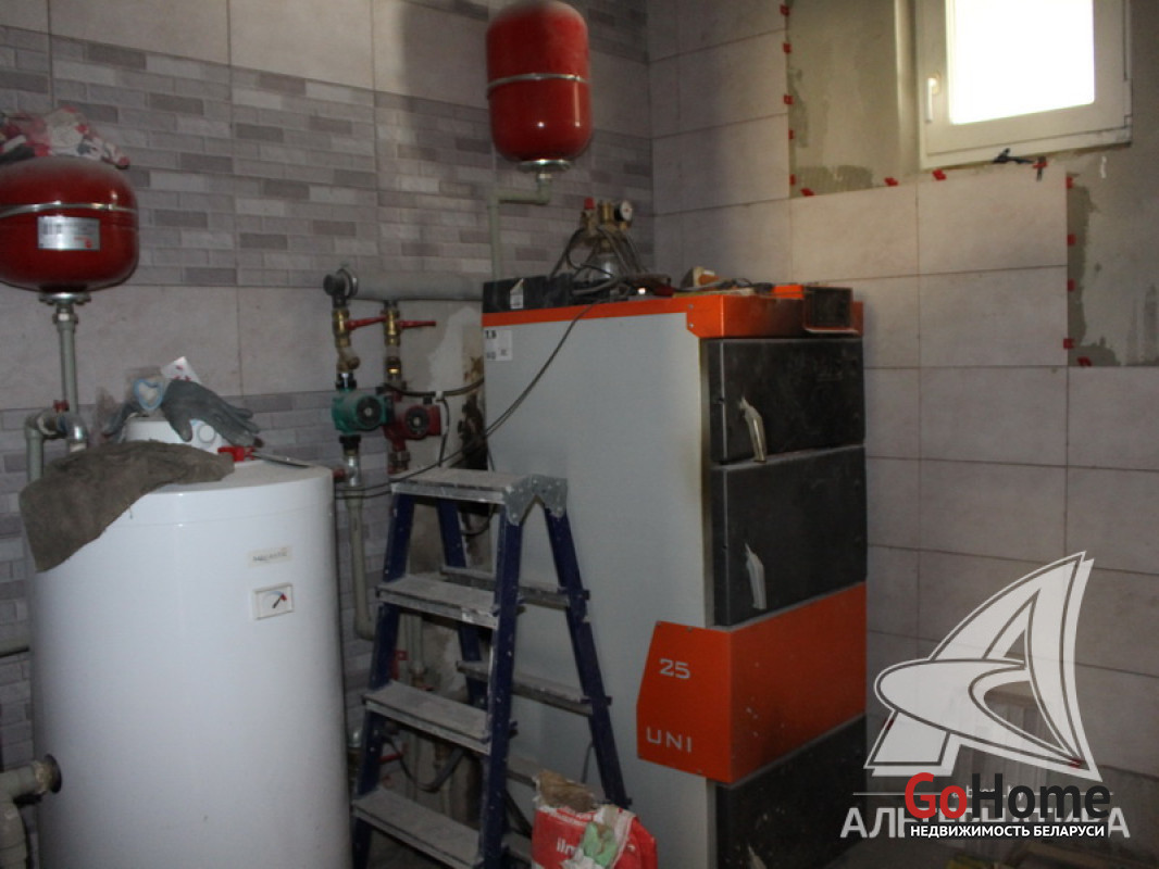 Коммуникации: отопление - газовый котел и твердотопливный, газ - централизованный, водоснабжение - скважина, электричество - централизованное, канализация - автономная.