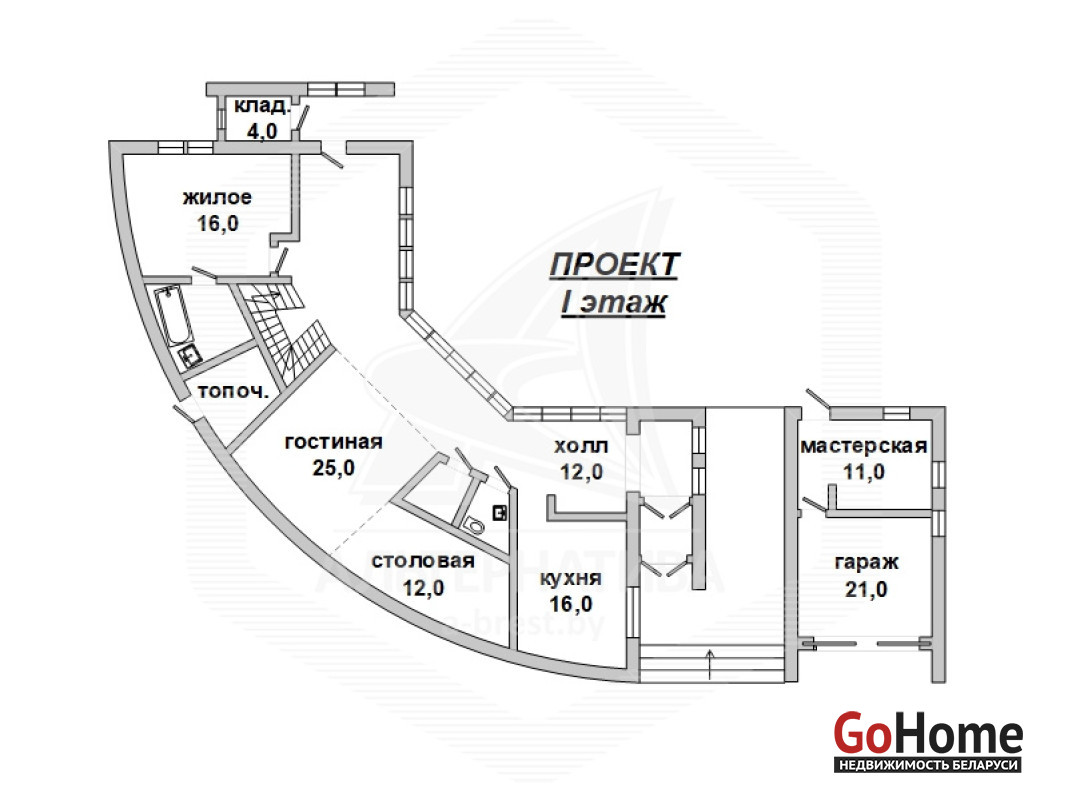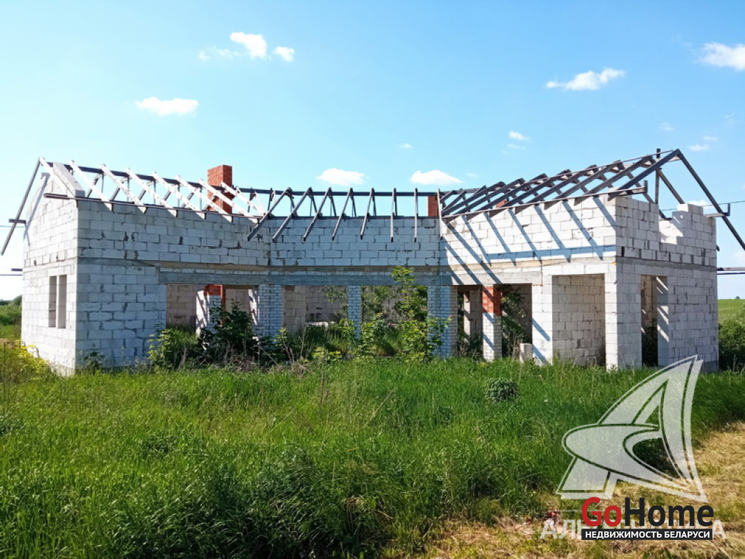 Коробка жилого дома в Брестском р-не. 1 этаж, мансарда. Общ.СНБ - 192,5 кв.м, общ.- 164,5 кв.м, жил.- 56,0 кв.м, кух.- 16,0 кв.м. 4 комнаты, высота потолка - 2,9 м.