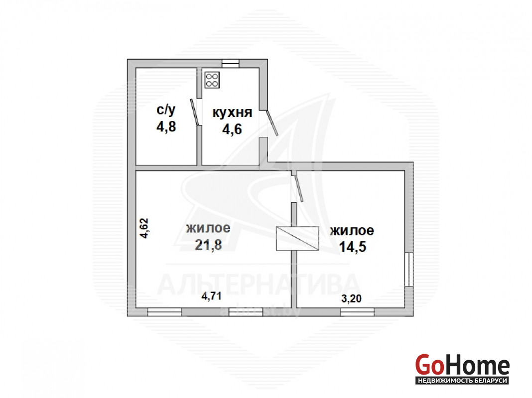 4-комнатная, 70/55.3/9.8 м2, (8 соток), 1 эт.