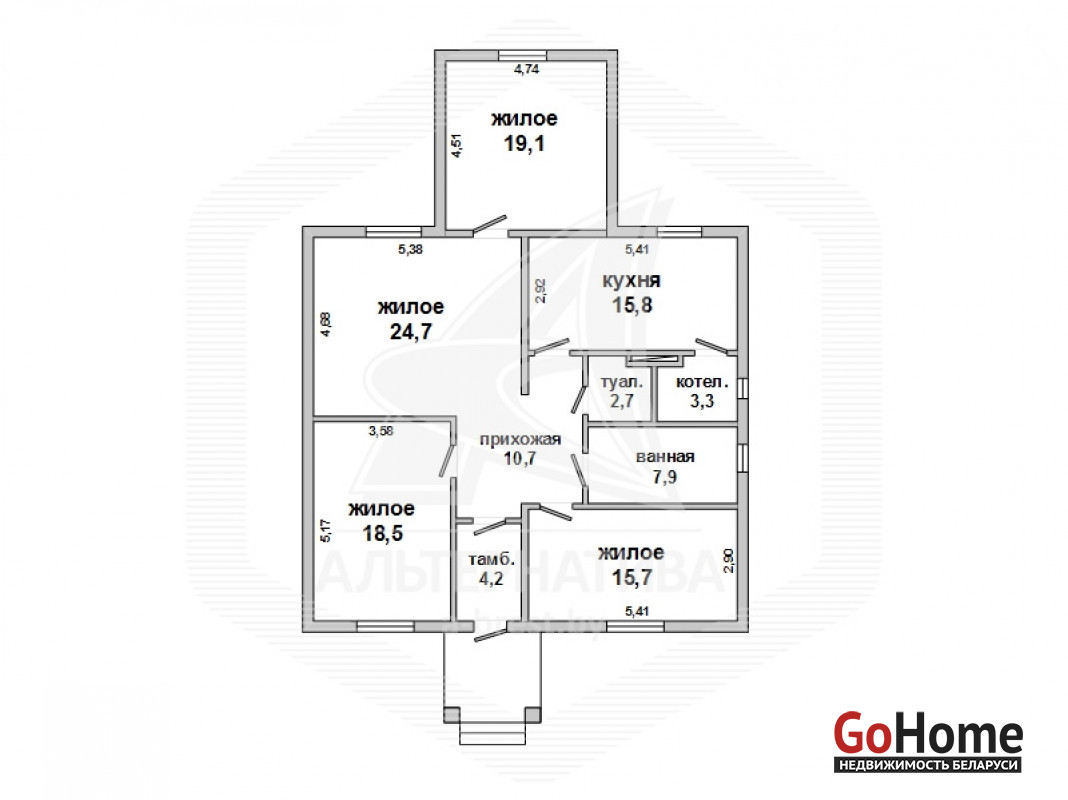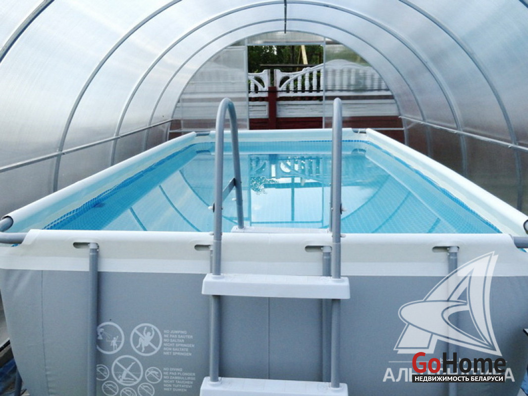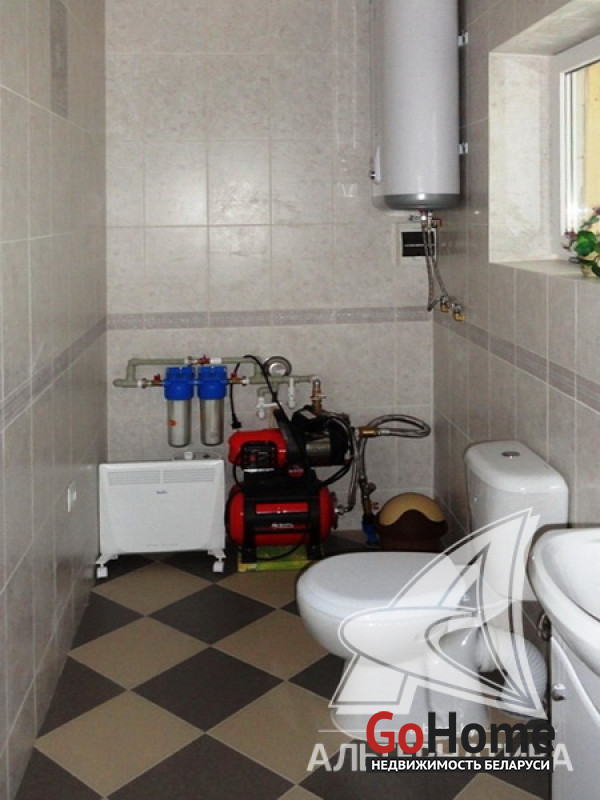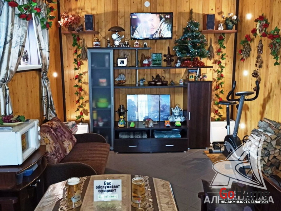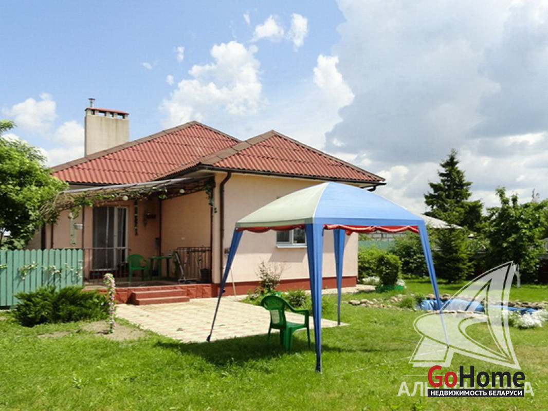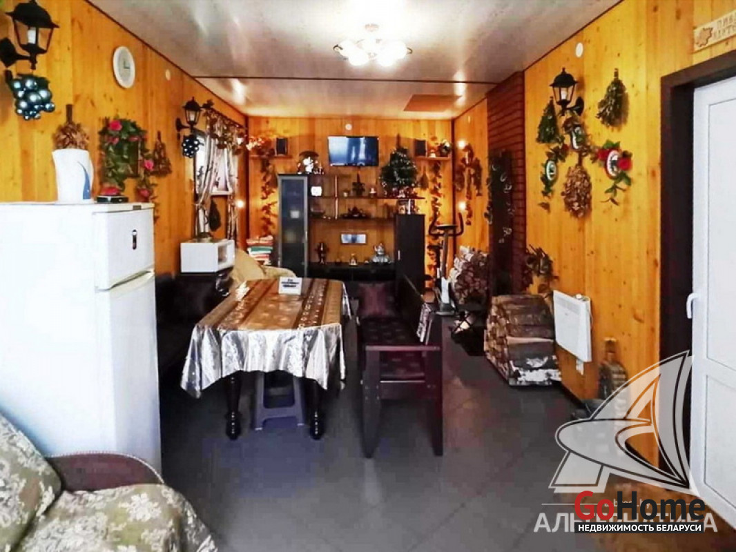 Жилой дом. 2008 г.п. Жабинковский р-н. Газосиликатный блок / пенопласт / штукатурка "короед" / шифер. Фундамент: ленточный монолитный; материал - бетон. 1 этаж. Общ. - 122,6 кв.м, жил.- 78,0 кв.м, кух.- 15,8 кв.м. 4 комнаты. Общ.СНБ - 122,6 кв.м. Коммуникации: электричество - централизованное, отопление - газовое, водоснабжение - скважина и гидрофор, газ - централизованный, канализация - местная. ХОЗ. ПОСТР: сарай, баня, погреб. Бассейн крытый в теплице, ландшафтный дизайн. Участок - 0,2467 га. Лот - 161060