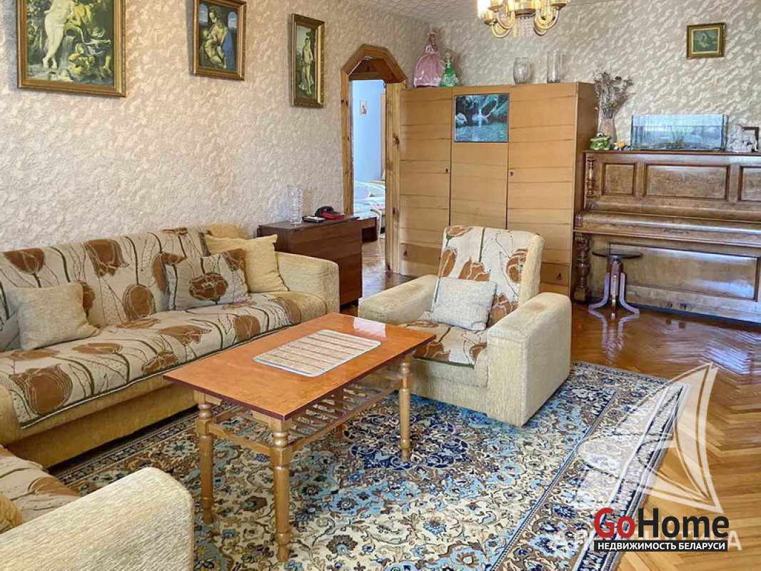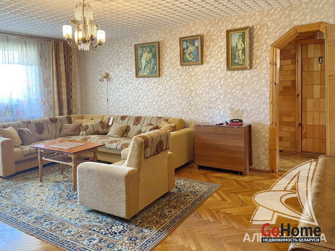3-комнатная квартира, г. Брест, ул. Дубровская, 1991 г.п., 5 / 5 панель, 69,5 / 68,0 / 46,3 / 9,9, санузел раздельный, балкон застеклен, стеклопакеты, потолки - оклеены касетонами (2,50 м), полы - ДСП (в двух комнатах), паркет (в зале и прихожей) и линолеум (в кухне), стены оклеены обоями, стальная ванна, телефон, домофон. Стенка, мягкая мебель и шкаф (в гостиной), холодильник, вытяжка. Вся мебель в спальнях. Квартира в жилом состоянии. Квартира расположена на две стороны. Окна выходят на зеленую зону. Дом оборудован пандусом. Есть технический этаж. Лот - 212390