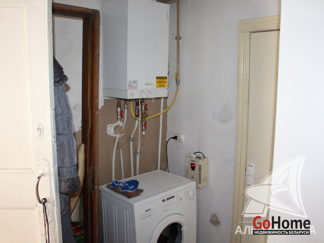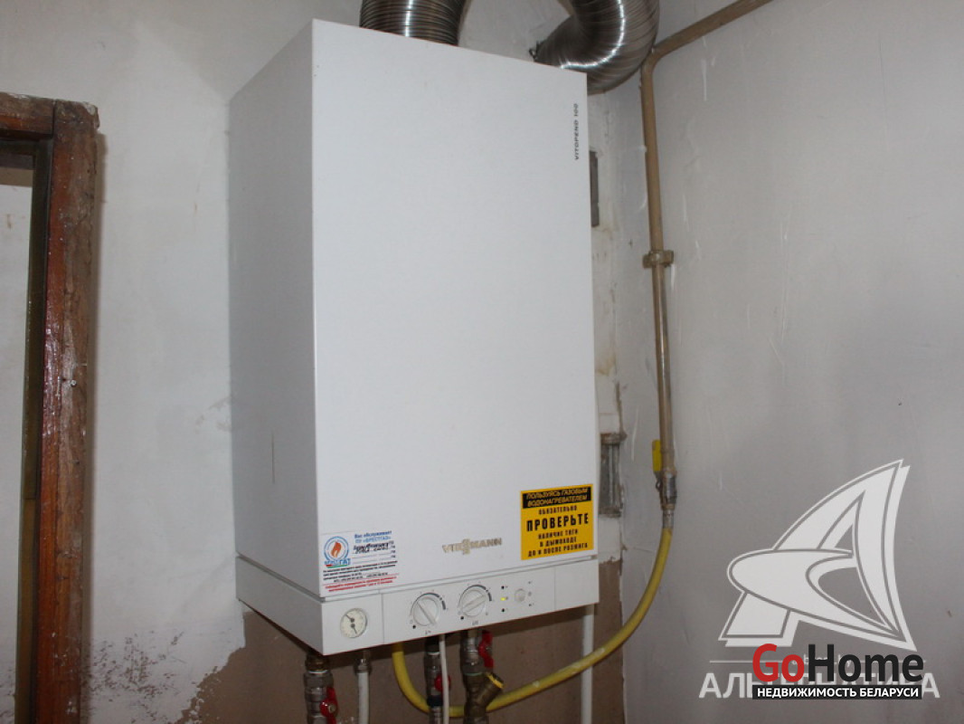 Коммуникации: отопление - газовый котел, газ - централизованный (в доме), водоснабжение - централизованный водопровод, электричество - централизованное, канализация - централизованная.