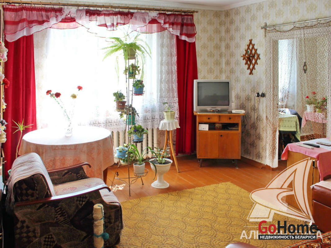 Квартира в блокированном жилом доме в г.Бресте. 1 и подвальный этаж. Общ.СНБ - 59,7 кв.м, общ.- 59,7 кв.м, жил.- 36,9 кв.м, кух.- 9,9 кв.м. 3 комнаты, высота потолка - 2,70 м.