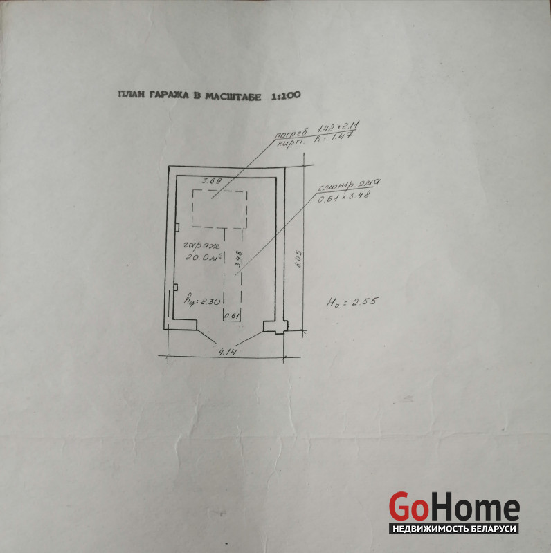 Гараж из кирпича, оштукатурен и покрашен, фундамент и плиты перекрытия – железобетон. Выполнена стяжка пола, отмостка и новая кровля. Яма, погреб. Асфальтированный заезд.