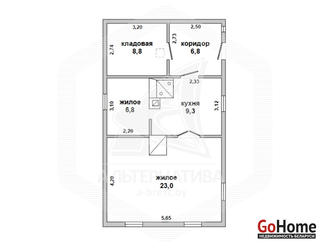 Жилой дом в Брестском р-не. 1958 г.п. 1 этаж. Общ.СНБ - 54,7 кв.м, общ.- 54,7 кв.м, жил.- 29,8 кв.м, кух.- 9,3 кв.м. 2 комнаты, высота потолка - 2,43 м.