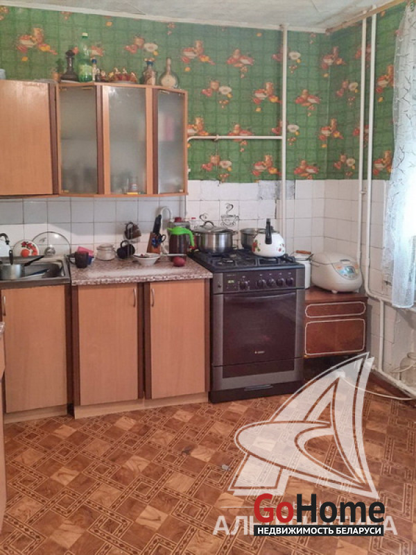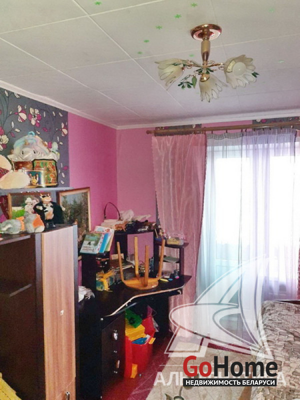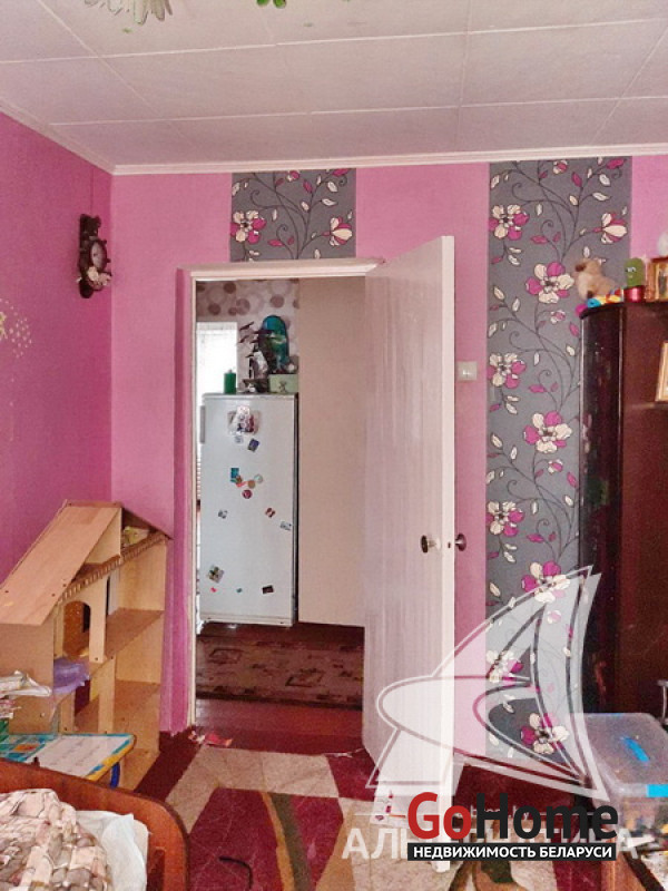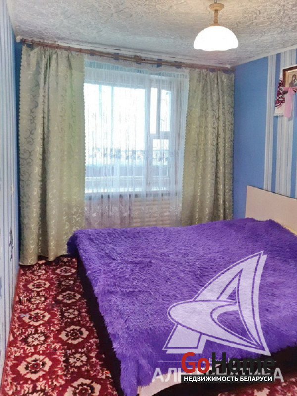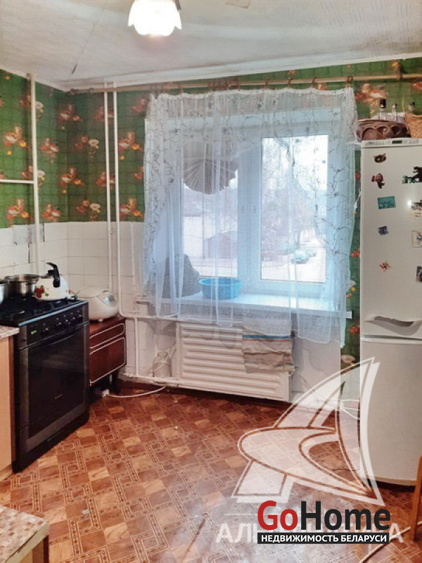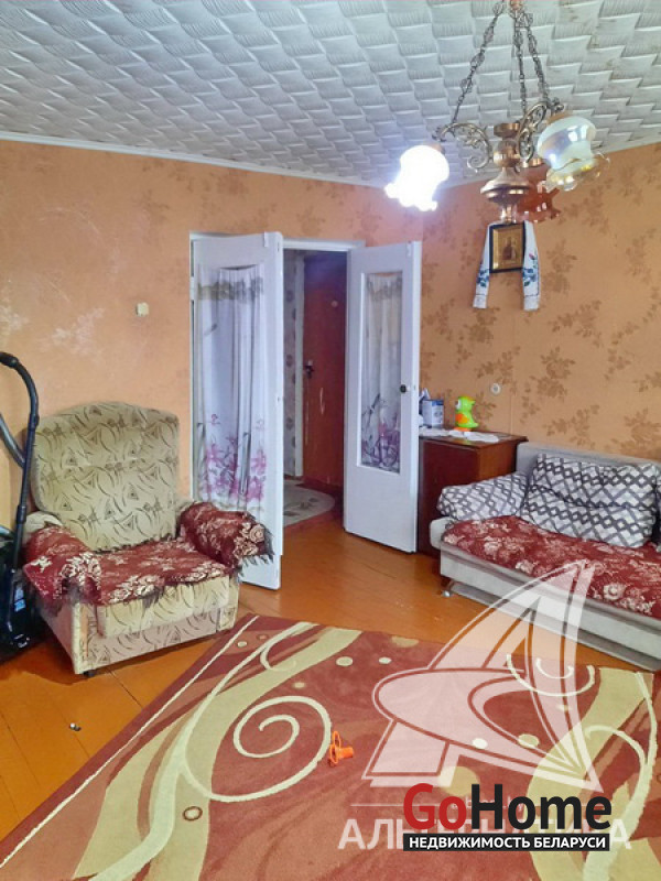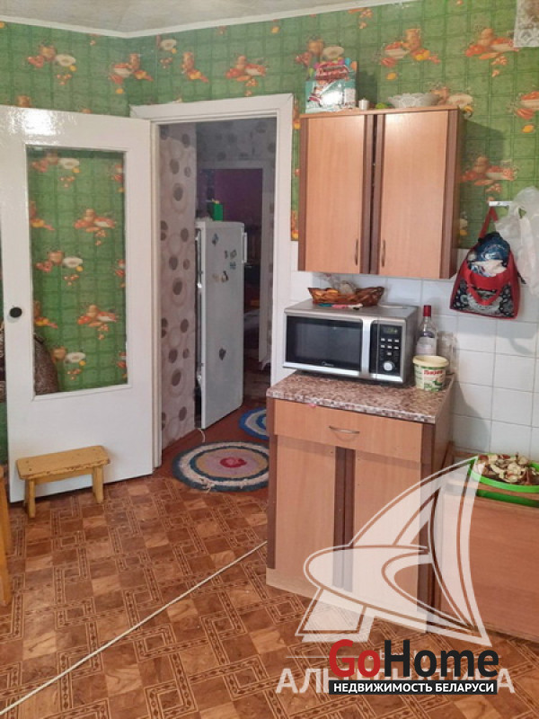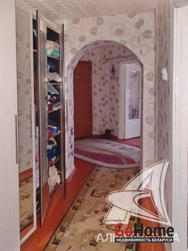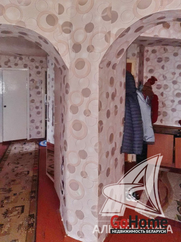 3-комнатная квартира, аг. Ореховский, ул. Ленина, 1985 г.п., 74,9 / 68,4 / 38,5 / 10,6, санузел раздельный, подвал, лоджия застеклена, стеклопакеты (в кухне, в спальне) и деревянные (в зале, в спальне), деревянные межкомнатные двери, входная дверь деревянная, потолки (2,5 м) - оклеены касетонами (в санузле), полы - доска крашеная и линолеум (в коридоре, в кухне), стены оклеены обоями, чугунная ванна, телефон. Кухонный гарнитур, двуспальная кровать, шкаф (в спальне). В квартире требуется ремонт. Квартира расположена на две стороны. На площадке имеется закрытое место для колясок. На этаже есть сушилка. Рядом детский сад, школа, амбулатория, торговый центр, клуб, почта. Лот - 213527