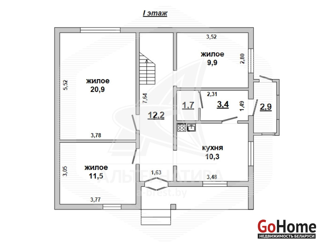 Жилой дом в Брестском р-не. 1989 г.п. 2 этажа. Общ.СНБ - 114,3 кв.м, общ.- 108,4 кв.м, жил.- 68,8 кв.м, кух.- 10,3 кв.м. 5 комнат, высота потолка - 2,70 м.