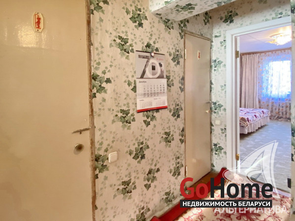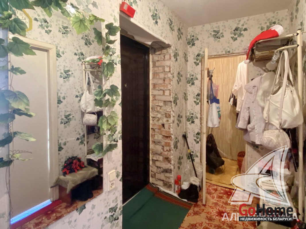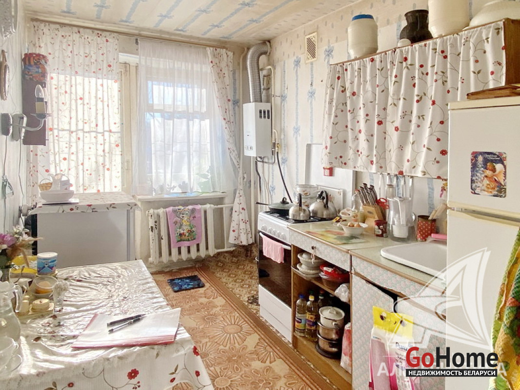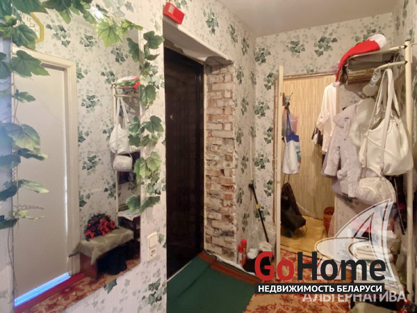 2-комнатная квартира, д. Скоки, ул. Мира, 1975 г.п., 2 / 3 кирпич, 51,7 / 48,7 / 29,7 / 8,0, санузел раздельный, лоджия, подвал, деревянные окна, деревянные межкомнатные двери, входная дверь металлическая, потолки - оклеены обоями и побелка (2,5 м), полы - доска крашеная и линолеум (в кухне), стены оклеены обоями, в санузле крашенные стены, стальная ванна, газовая колонка в кухне, телефон. Кухонный гарнитур, газовая плита. Квартира в жилом состоянии. Квартира расположена на две стороны. Окна выходят на зеленую зону. Чистый подъезд. Лот - 213931