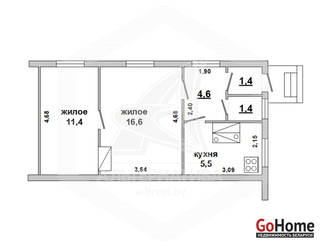 Квартира в блокированном жилом доме в Каменецком р-не. 1958 г.п. 1 этаж. Общ.СНБ - 40,9 кв.м, общ.- 40,9 кв.м, жил.- 28,0 кв.м, кух.- 5,5 кв.м. 2 комнаты, высота потолка - 2,60 м.