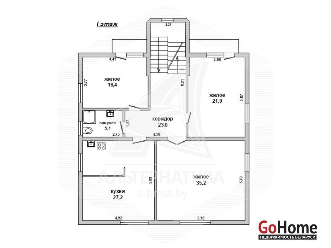 Жилой дом в г. Бресте. 2003 г.п. 2 этажа. Общ.СНБ - 379,0 кв.м, общ.- 191,3 кв.м, жил.- 73,5 кв.м, кух.- 27,2 кв.м. 3 комнаты, высота потолка - 2,80 м.