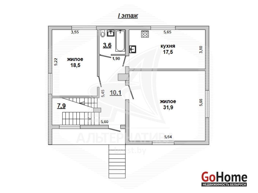 Жилой дом в Брестском р-не. 2 этажа, цокольный этаж. Общ.СНБ - 269,6 кв.м, общ.- 176,2 кв.м, жил.- 116,9 кв.м, кух.- 17,5 кв.м. 5 комнат, высота потолка - 2,80 м.