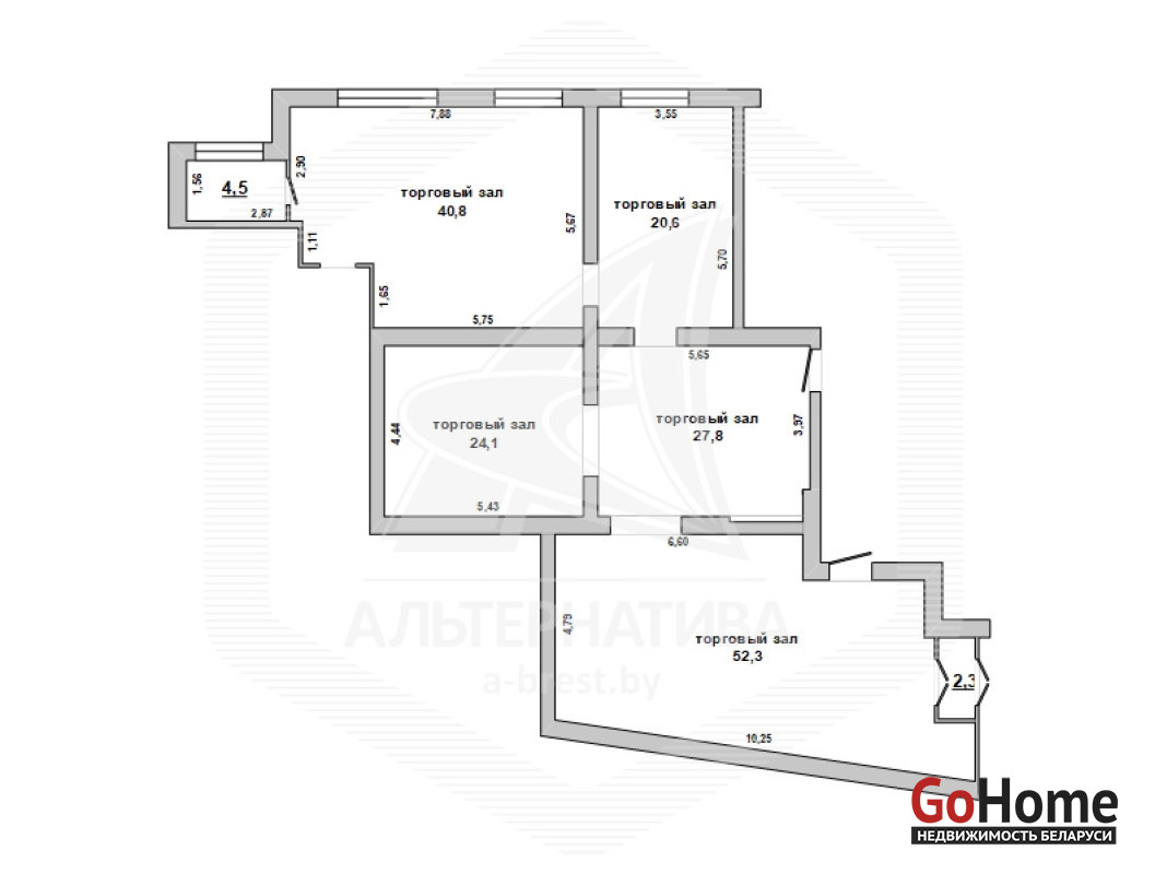 Торговое помещение в аренду в восточной части города Бреста общей площадью 181,6 кв.м. Изолированное помещение с отдельным входом расположено на 1 (первом) этаже торгового комплекса. Состоит из нескольких проходных торговых залов разной площади (52,3 + 27,8 + 24,1 + 20,6 + 40,8 кв.м). Есть подсобное помещение. Высота потолков - 2,45 м. Технические характеристики помещения: полы - плитка, стены оштукатурены, окрашены, потолок - армстронг, окна, двери - ПВХ. Установлена пожарная сигнализация, индивидуальные приборы учета электроэнергии и водоснабжения. Цена указана с НДС. Рассматриваются все варианты. Лот - 220009A
