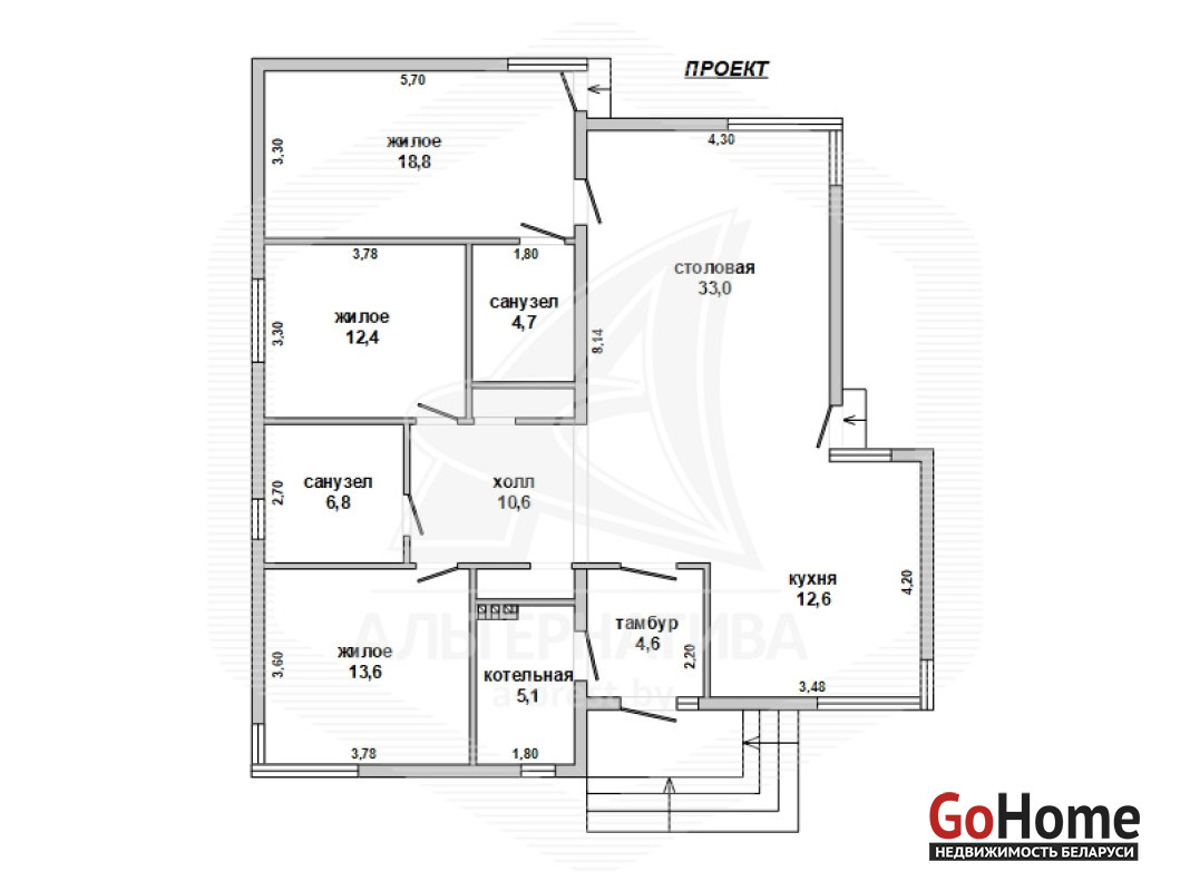 Коробка жилого дома в Брестском р-не. 2021 г.п. 1 этаж. Общ.СНБ - 122,5 кв.м, общ.- 122,5 кв.м, жил.- 77,94 кв.м, кух.- 12,66 кв.м. 4 комнаты.