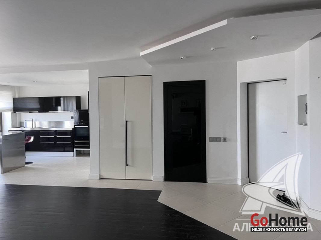 4-комнатная квартира, г. Брест, ул. Сикорского, 2006 г.п., 4 / 6 кирпич, 147,1 / 144,4 / 88,4 / 15,7, санузел раздельный, две лоджии застеклены, деревянные стеклопакеты, межкомнатные двери - шпон (Италия), входная дверь металлическая, одноуровневые потолки - из гипсокартона (2,72 м), полы - паркет (массив, ясень) и плитка производство Италия (в коридоре, в кухне), есть электрический подогрев пола, стены оклеены обоями, в санузле современная плитка (Италия), душевая кабина, акриловая ванна, джакузи, установлена система вентиляции Kata (в ванной), бойлер, входящий фильтр, три кондиционера Daikin, телефон, домофон, система видеонаблюдения. Кухонный гарнитур (Италия), варочная индукционная поверхность, посудомоечная машина Miele, духовой шкаф, вытяжка Elica, пароварка, шкаф (в прихожей, в спальне), купе-система хранения вещей (в кладовке). Квартира с индивидуальными дизайнерскими решениями. Чистый подъезд. Один пассажирский лифт. Во дворе игровая детская площадка, парковка для автомобилей. Лот - 221067