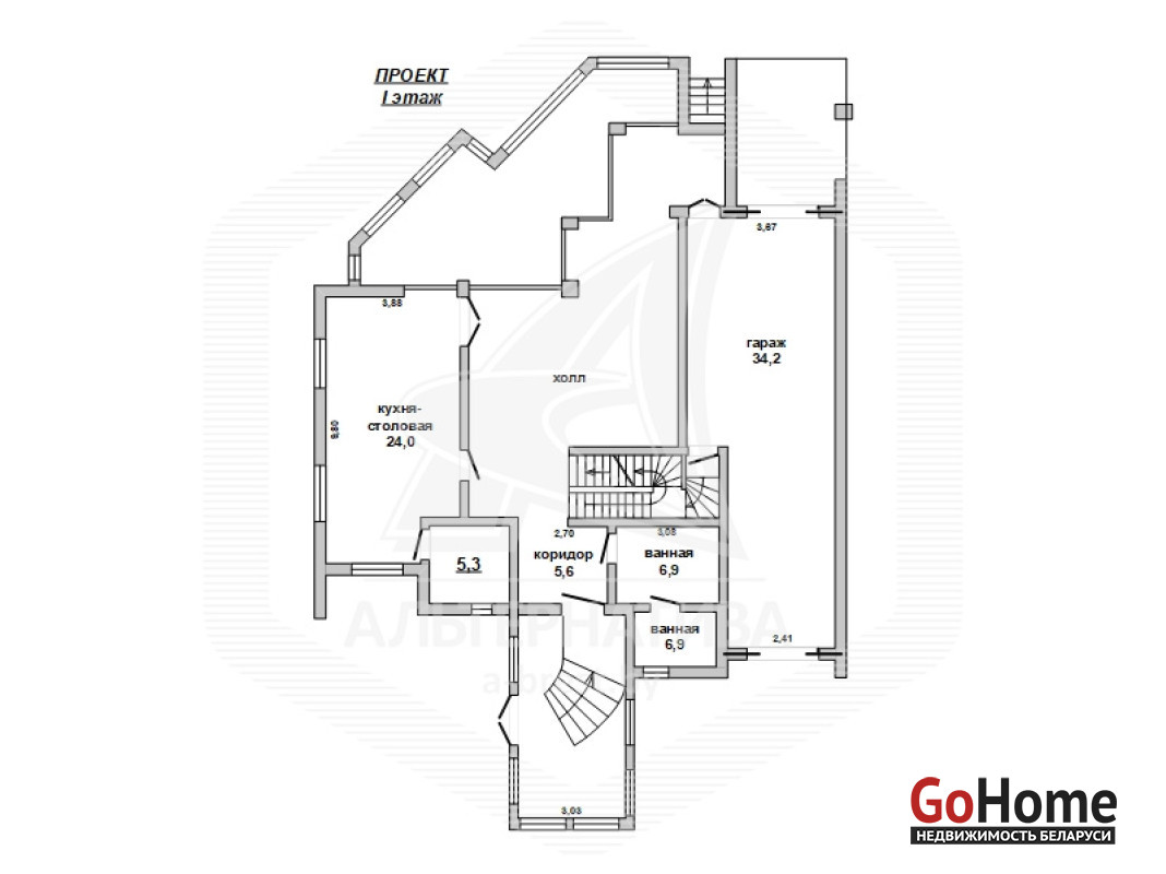 Жилой дом г.Бресте. 3 этажа. Общ.СНБ - 629,6 кв.м, общ.- 477,1 кв.м, жил.- 156,5 кв.м, кух.- 24,0 кв.м.12 комнат, высота потолка - 3,20 м.