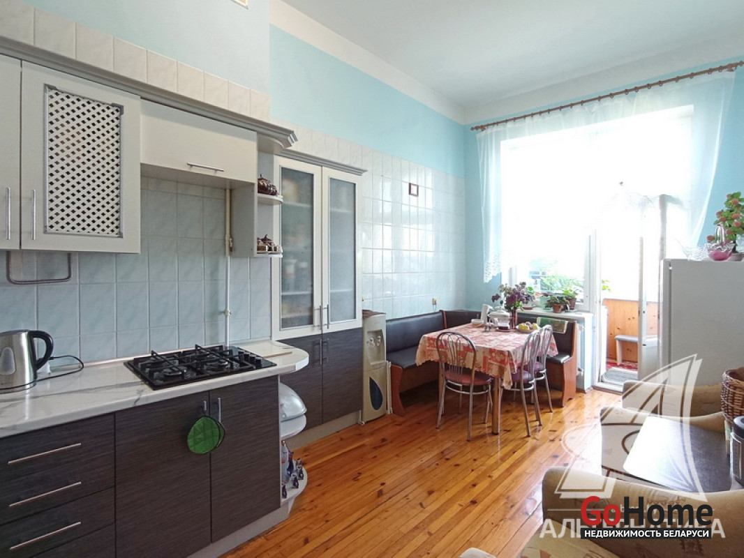 3-комнатная квартира, г. Брест, ул. Лейтенанта Рябцева, 2003 г.п., 4 / 4 кирпич, 102,0 / 98,6 / 52,8 / 15,6, санузел раздельный, лоджия застеклена и утеплена, трехкамерные деревянные окна, входная дверь деревянная, одноуровневые потолки (3,53 м) - снежка (в кухне, в спальне) и натяжные (глянец в коридоре и в санузле, сатин в зале), полы - доска под лак и плитка, стены оклеены обоями (в зале, в спальне) и окрашены (в кухне, в коридоре), в санузле современная плитка, ванна, газовая колонка в кухне, проведена новая электропроводка, телефон, домофон, система видеонаблюдения. Кухонный гарнитур (Бобруйскмебель), варочная поверхность, холодильник (ВЕКО), угловой диван на кухне, мебель в спальне. Квартира с хорошим ремонтом. Квартира расположена на две стороны. Тамбур на четыре квартиры. Чистый подъезд. Есть технический этаж, двускатная крыша. Крыша утеплена по периметру квартиры минеральной ватой. Тихий благоустроенный двор. Во дворе парковка для автомобилей. Рядом магазины, остановка, церковь. Лот - 221395