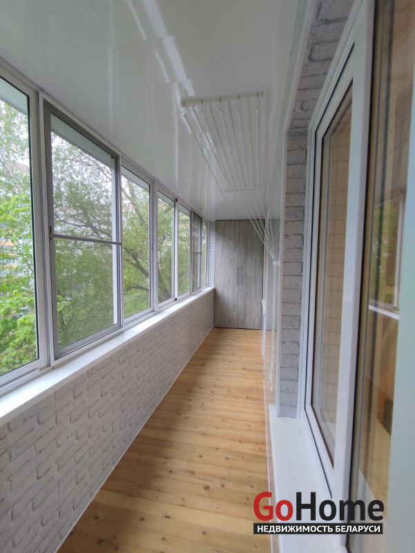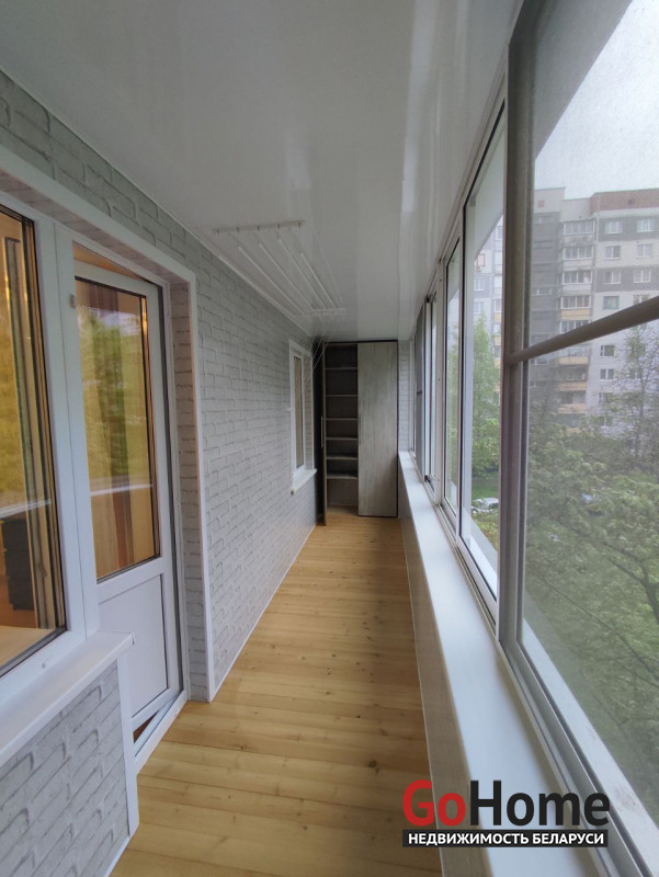 В уютной комнате располагается удобная двуспальная кровать, два кресла, стол, телевизор, вместительный комод. Застекленная лоджия с торцов оборудована функциональными шкафами.