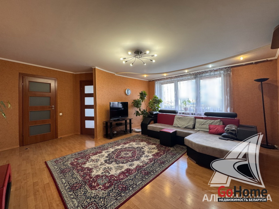 3-комнатная квартира, г. Брест, пр-т Машерова, 1970 г.п., 8 / 9 кирпич, 87,5 / 84,6 / 63,4 / 12,5, санузел раздельный, лоджия, деревянные стеклопакеты, входная дверь металлическая, потолки - из гипсокартона, натяжные, многоуровневые, полы - ламинат (положен на стяжку), стены оклеены обоями, в санузле современная плитка, новый электросчетчик, телефон, домофон. Квартира в жилом состоянии. Квартира расположена на две стороны. Один пассажирский лифт. Тамбур на две квартиры. Дом оборудован пандусом. Лот - 192327
