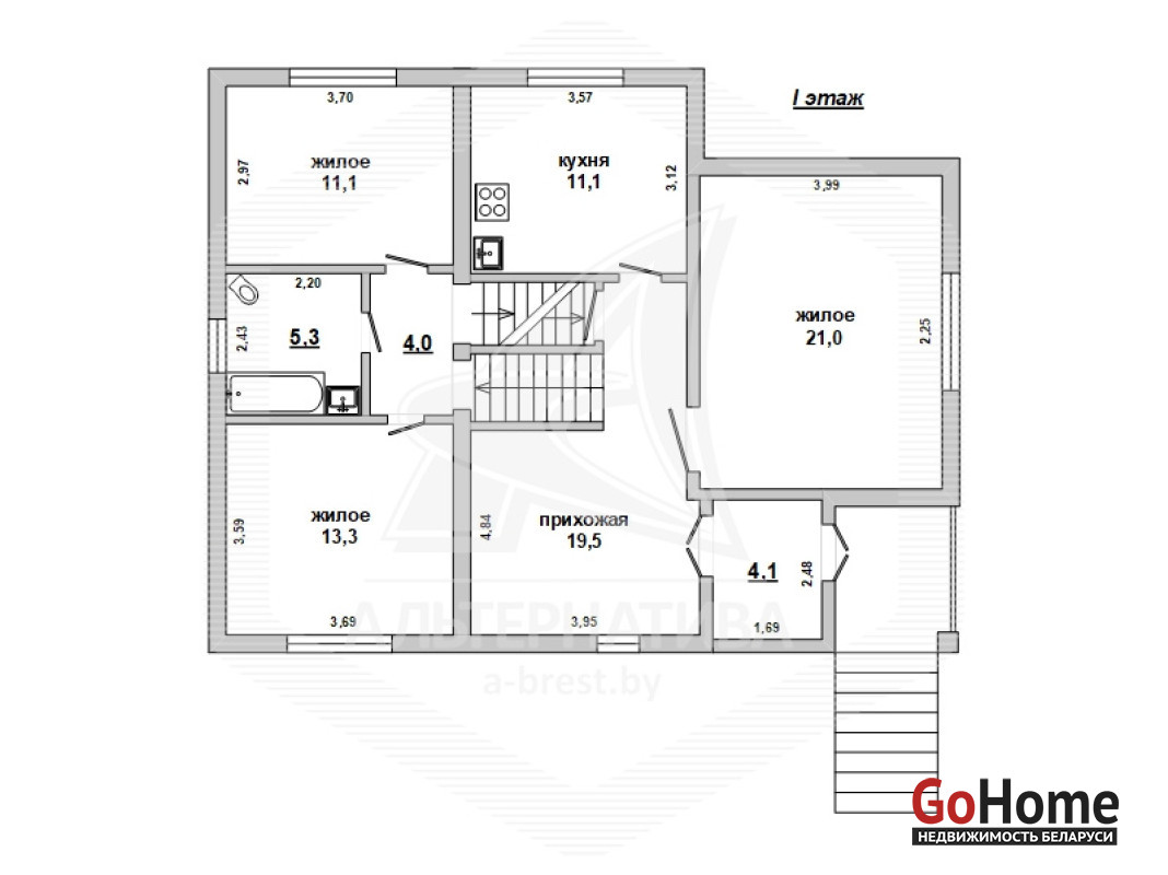 Жилой дом в г.Бресте. 2005 г.п. 1 этаж, мансарда, цокольный этаж. Общ.СНБ - 211,8 кв.м, общ.- 124,2 кв.м, жил.- 61,9 кв.м, кух.- 11,1 кв.м. 4 комнаты, высота потолка - 2,60 м.