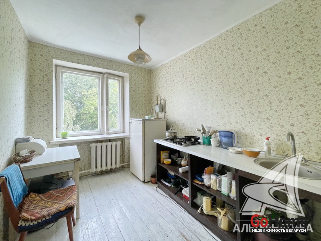 1-комнатная квартира, г. Брест, наб. Франциска Скорины, 1970 г.п., 5 / 5 кирпич, 34,3 / 34,3 / 19,5 / 7,1, санузел раздельный, подвал, деревянные окна, деревянные межкомнатные двери, входная дверь деревянная, одноуровневые потолки - 2,50 м, полы - окрашенная доска, стены - декоративная окраска, телефон, домофон. Кухонный гарнитур. Квартира без ремонта. Чистый подъезд. Во дворе игровая детская площадка, парковка для автомобилей. Лот - 221790