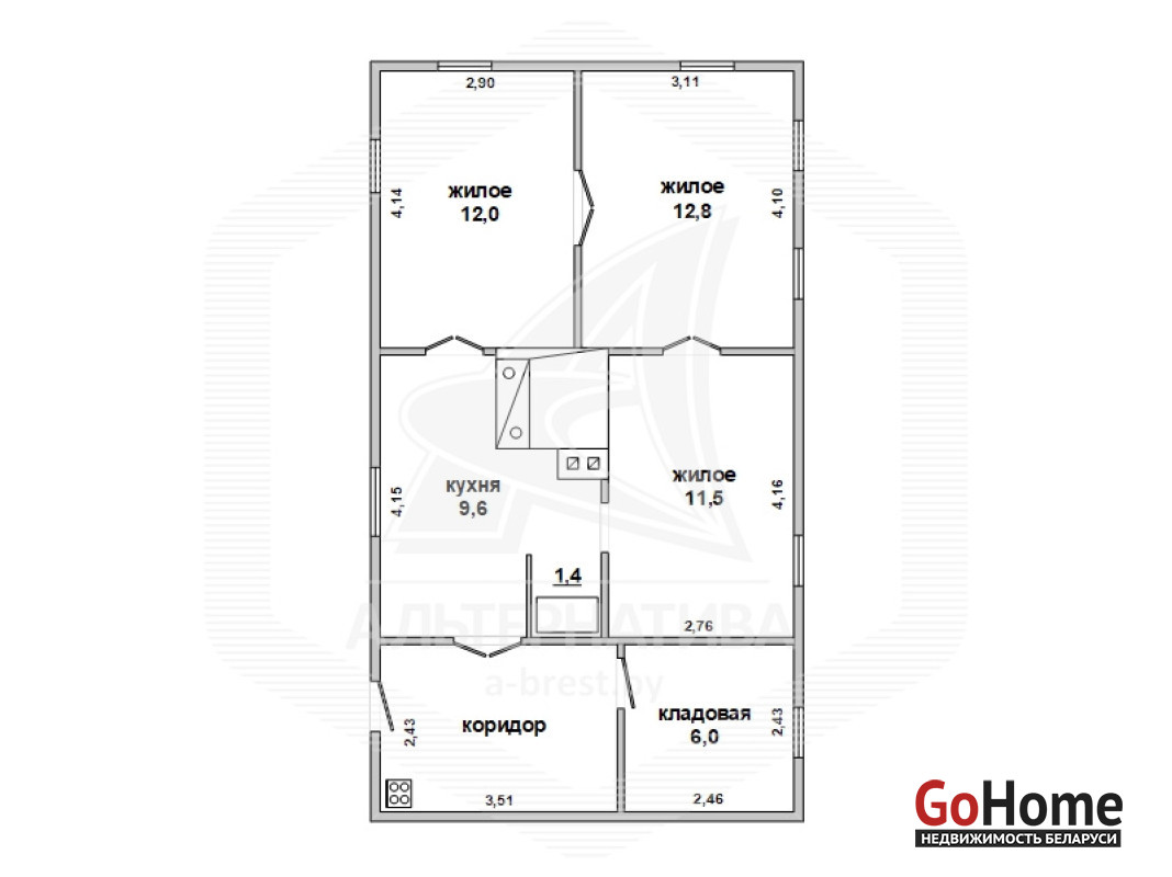 Жилой дом в Каменецком р-не. 1976 г.п. 1 этаж. Общ.СНБ - 61,8 кв.м, общ.- 61,8 кв.м, жил.- 36,3 кв.м, кух.- 9,6 кв.м. 3 комнаты, высота потолка - 2,45 м.