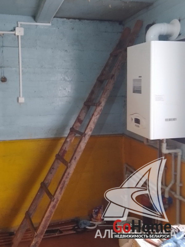 Коммуникации: отопление - газовый котел и твердотопливный, газ - централизованный (в доме), водоснабжение - централизованное, электричество - централизованное.
