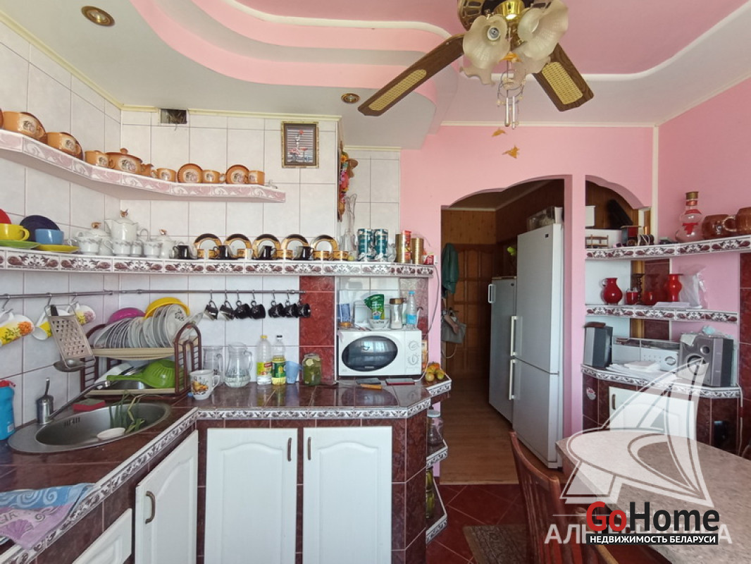 4-комнатная квартира, аг. Беловежский, ул. Якуба Коласа, 1993 г.п., 3 / 3 панель, 85,4 / 81,0 / 53,7 / 9,1, санузел раздельный, лоджия застеклена, подвал, стеклопакеты, межкомнатные двери - массив (орех), входная дверь металлическая, потолки - двухуровневые из гипсокартона (в кухне) и оклеены касетонами (2,60 м), полы - ламинат, стены - вагонка (в коридоре), окрашены (в кухне) и оклеены обоями, в санузле современная плитка, заменены сантехнические трубы (в кухне), чугунная ванна, телефон. Кухонный гарнитур, встроенный шкаф, остальная мебель по договоренности. Квартира в жилом состоянии. Квартира расположена на две стороны. Окна жилых комнат выходят во двор. Чистый подъезд. Тамбур на две квартиры. Во дворе парковка для автомобилей. В шаговой доступности находятся поликлиника, школа, детский сад, школа искусств, гостиница, кафе, магазины, церковь. Лот - 222324