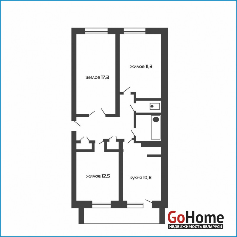 3-комнатная квартира, ул. Вычулки. Общая площадь 68,5 кв.м., жилая 41,4 кв.м., кухня 10,8 кв.м. Квартира расположена на первом этаже двухэтажного дома. Состояние жилое, автономное газовое топление. Есть балкон, сарай в подвале+гараж.