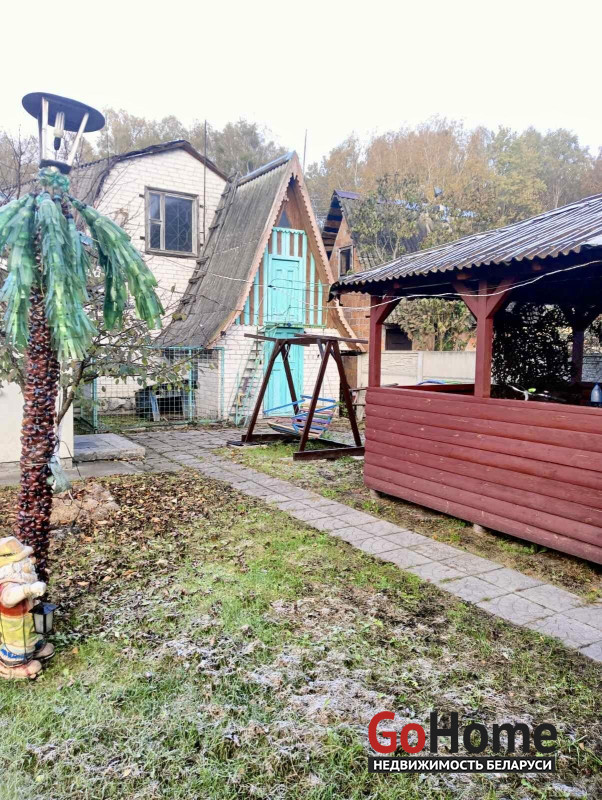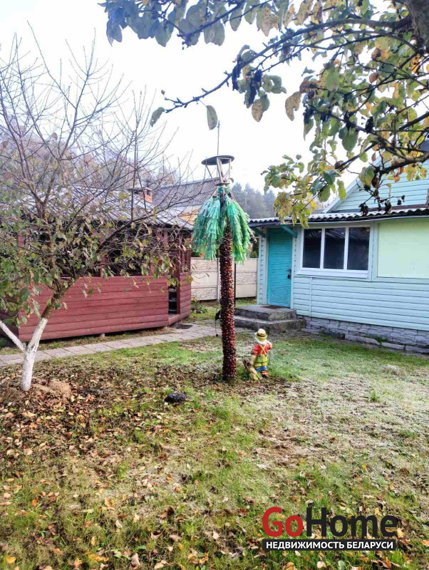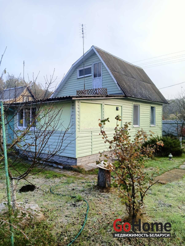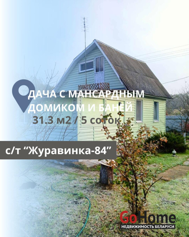Дача с мансардным домиком и баней в сосновом лесу, с/т Журавинка-84, сразу за аг. Муховец. 7 км от черты города. Участок 5 соток, огорожен бетонным забором, есть откатные ворота из металлопрофиля. .Дом деревянный, обшитый вагонкой, площадью 31,3 кв.м., крыша - шифер. Отопление - печь/камин. Баня из блока, утеплена и оштукатурена (короед), крыша - ондулин. В бане есть комната отдыха с кухней, душ, туалет, бойлер на подогрев воды, установлена стиральная машина. Также есть беседка с мангалом, хозпостройка и вольер. Коммуникации: электричество, вода - скважина/гидрофор, канализация местная, газ подведен к дому. На участке растут плодово-ягодные деревья. Садовое товарищество окружено лесом, до выхода в лес 30 метров. До асфальта и маршрутки 1,5 км.ЧУП "Единый центр реализации жилья". УНН 290482452Лицензия №02240/170 от 22.11.2007Договор №160/2 от 26.04.2021 года.