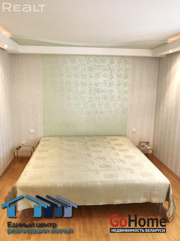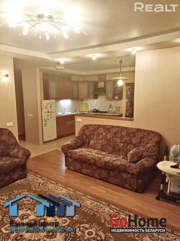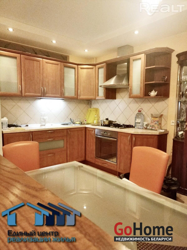 Квартира с современным качественным ремонтом. Полы--паркет дубовый/плитка, окна ПВХ. Реализована система разноуровневого освещения во всех комнатах (декоративные панель из гипсокартона). За счет перепланировки (согласована) визуально расширено пространство между залом и кухней.