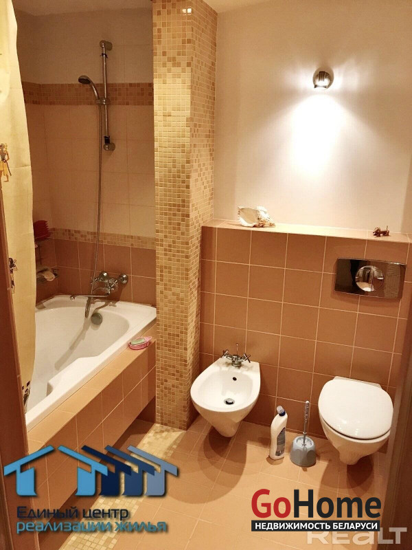 Санузел совмещенный (дополнительно установлено биде). По индивидуальному проекту заменена проводка. Проложена система теплых полов.
