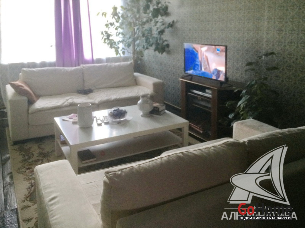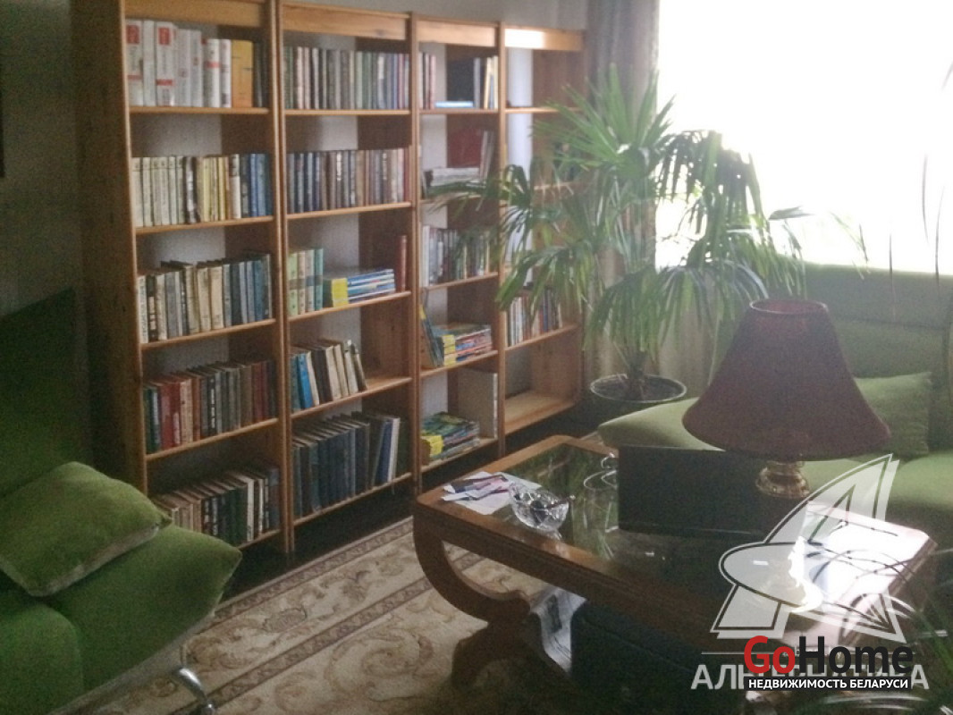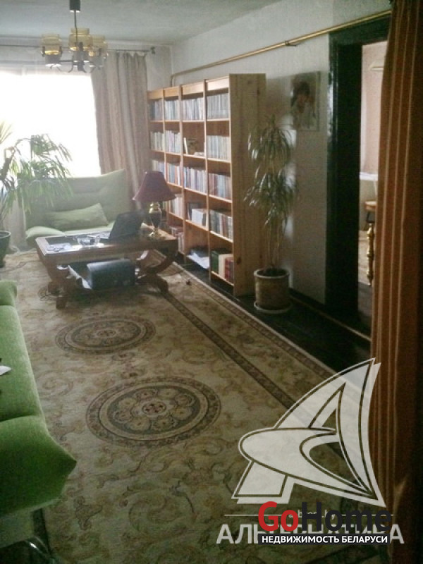 4-комнатная квартира, аг. Медно, ул. Республиканская, 1976 г.п., 1 / 2 панель, 84,2 / 81,5 / 57,3 / 11,4, санузел совмещенный, лоджия, частично стеклопакеты, деревянные межкомнатные двери, входная дверь металлическая, потолки - побелка, полы - доска, стены оклеены обоями, заменена сантехника, ванна. Кухонный гарнитур, корпусная мебель (диваны и кресло), книжная полка с книгами. Квартира в жилом состоянии. Лот - 222548