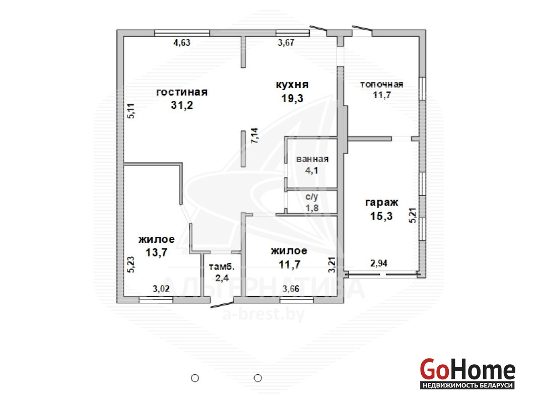 Коробка жилого дома в Жабинковском р-не. 2021 г.п. 1 этаж. Общ.СНБ - 115,0 кв.м, общ.- 111,2 кв.м, жил.- 56,6 кв.м, кух.- 13,7 кв.м. 3 комнаты, высота потолка - 2,50 м.