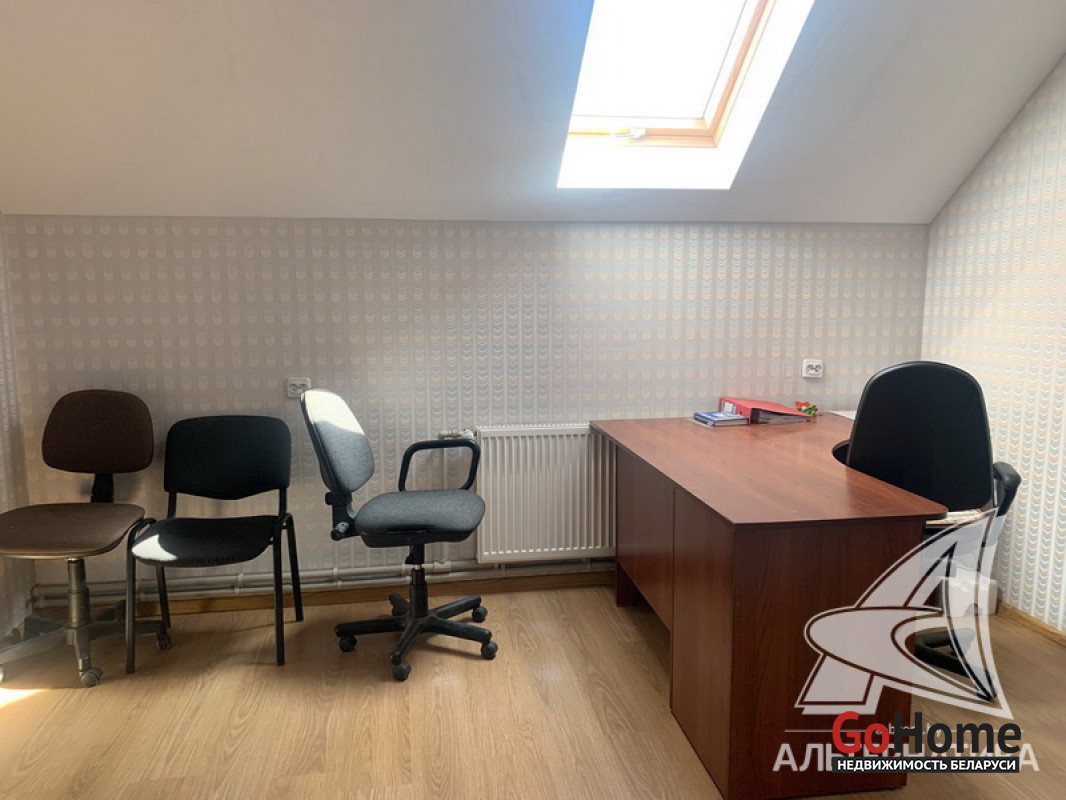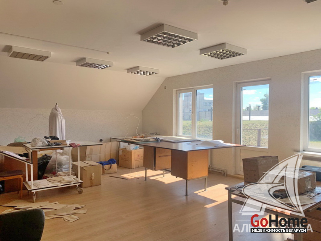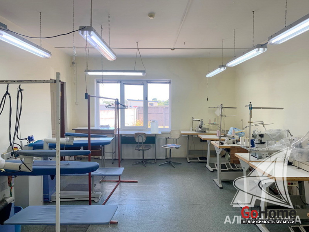 Здание административно - хозяйственное в собственность в городе Кобрин Брестской области общей площадью 419,6 кв.м, расположенное на земельном участке площадью 0,1856 га. Отдельно стоящее капитальное строение 2009 года реконструкции (1 этаж + мансарда). Реконструировалось и использовалось для размещения швейного производства. 1 (первый) этаж включает в себя несколько помещений разной площади (48,2 + 25,6 + 59,3 + 41,1 кв.м), 2 (два) бытовых помещения (11,3 + 9,7 кв.м), 2 (два) отдельных санузла, подсобные помещения, котельная. Высота потолков - 2,85 м. 2 (второй) мансардный этаж включает в себя 7 (семь) помещений разной площади (12,6 + 9,3 + 19,3 + 22,3 + 12,5 + 12,6 + 45,6 кв.м), отдельный санузел (5,8 кв.м), коридор. Высота потолков - 2,60 м. Технические характеристики здания: фундамент бетонный, полы бетонные, утепленные, плитка, стены кирпичные, утепленные, окна - ПВХ, перекрытия - железобетонные плиты, крыша - металлочерепица. Коммуникации: газовое отопление (собственная котельная), электричество - 220, 380 Вт (входная мощность до 50 кВт с возможностью увеличения до 100 кВт), водоснабжение центральное, канализация центральная. Земельный участок площадью 0,1856 га предоставлен собственнику в аренду для обслуживания здания. Территория огорожена бетонным забором. Рассматриваются все варианты. Лот - 222540