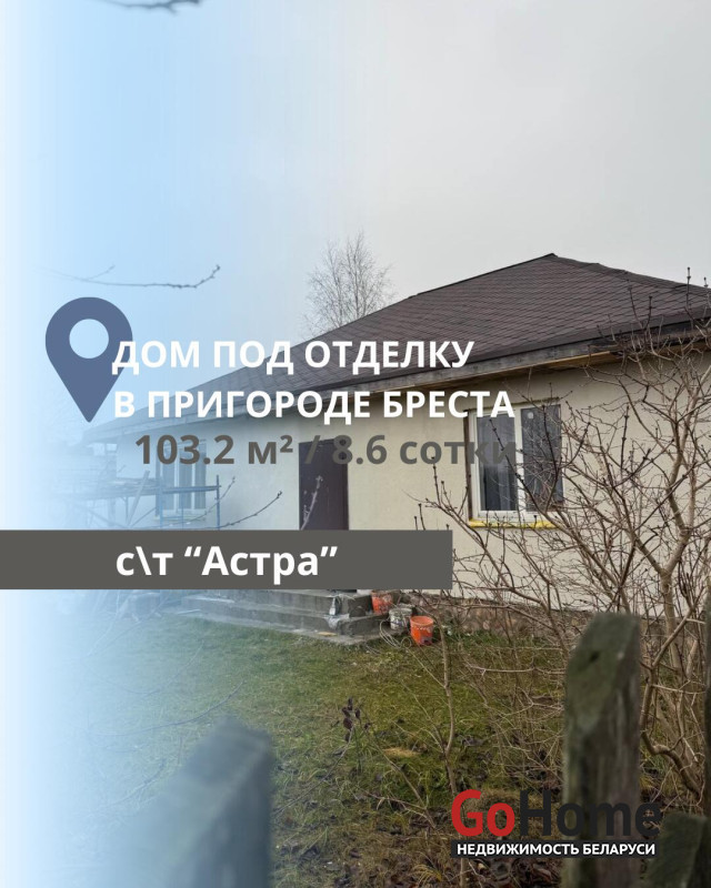 Подписывайтесь на наш instagram @ecrzby для удобного слежения за новыми актуальными объектами.Жилой дом без отделки в с/т Астра. Общая площадь дома 103,2 кв..м., материал стен--газосиликатный блок. Стены готовы к чистовой отделке, потолки--гипсокартон. Фасад оштукатурен. Кровля--мягкая битумная черепица. Фундамент--ленточный монолит. Есть электрокотел, электричество заведено в дом. Канализация местная, газ по улице. Участок 8,6 сотки, есть гараж 60 кв.м. Отличное расположение! Налажено транспортное сообщение с/т с городом. рядом живописные озера.ЧУП "Единый центр реализации жилья". УНН 290482452 Лицензия №02240/170 от 22.11.2007 Договор №198/2 от 09.09.2022 года.