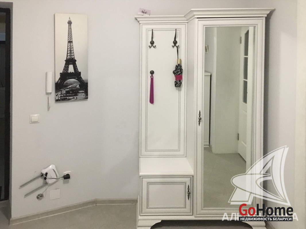 1-комнатная квартира, г. Брест, ул. Гоголя, 2015 г.п., 10 / 10 кирпич, 40,6 / 37,2 / 15,9 / 10,2, санузел раздельный, лоджия застеклена, двухкамерные стеклопакеты, межкомнатные двери - экошпон, входная дверь металлическая, потолки - 2,57 м, стены оклеены обоями, в санузле современная плитка, полы - ламинат и плитка, телефон, домофон. Мебель и техника. Квартира с хорошим ремонтом. Один пассажирский лифт. Квартира продается вместе с гаражом (в крытой парковке) и сараем по адресу ул. Халтурина 2/1. Лот - 222812